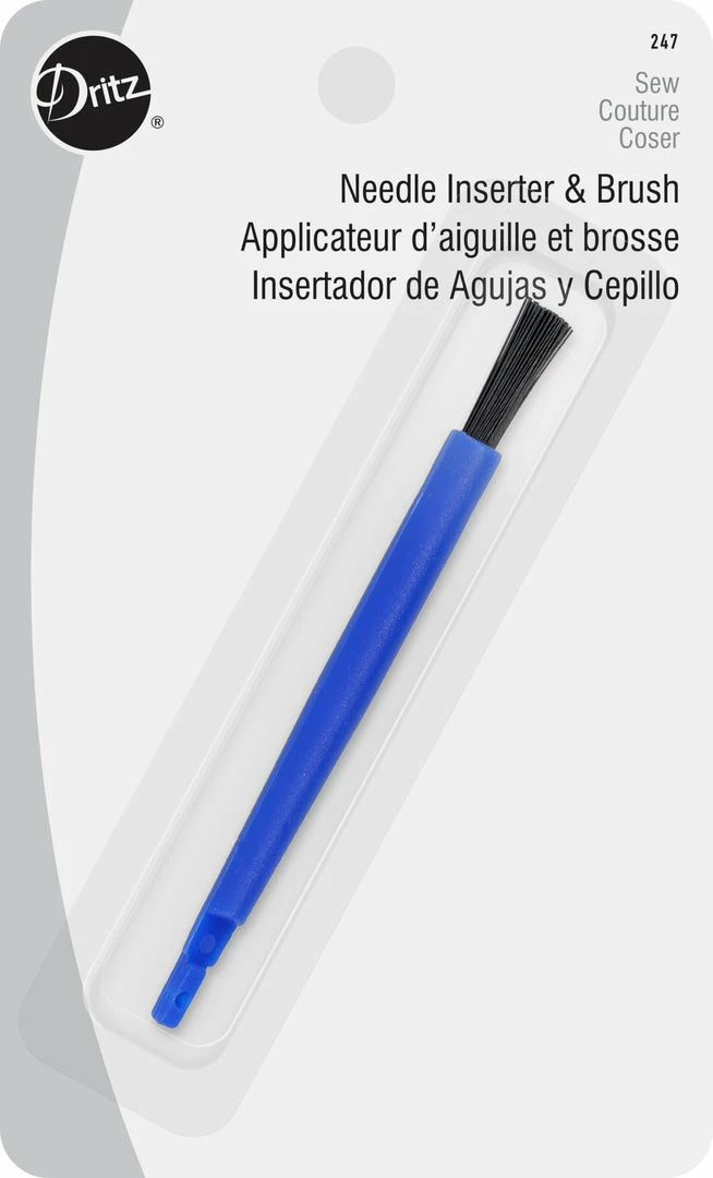 Dritz Machine Needle Inserter & Brush is the answer to all your threading woes. This unique product is a machine needle inserter and a lint brush, all rolled into one. The inserter holds the needle steady so that it can be easily inserted and removed from the sewing machine while the brush removes lint from sewing machine or serger. A valuable addition to your sewing kit, this inserter and brush fits where fingers can’t.