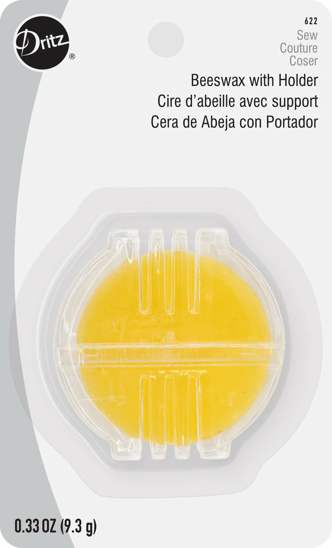 Dritz Beeswax comes in a handy holder making it quick and easy to use. Simply lay your thread over the holder and pull through one of the open slots to coat thread along the way. It not only prevents thread from tangling when hand sewing, but also helps to strengthen it. Dritz beeswax will not stain or discolor your thread.