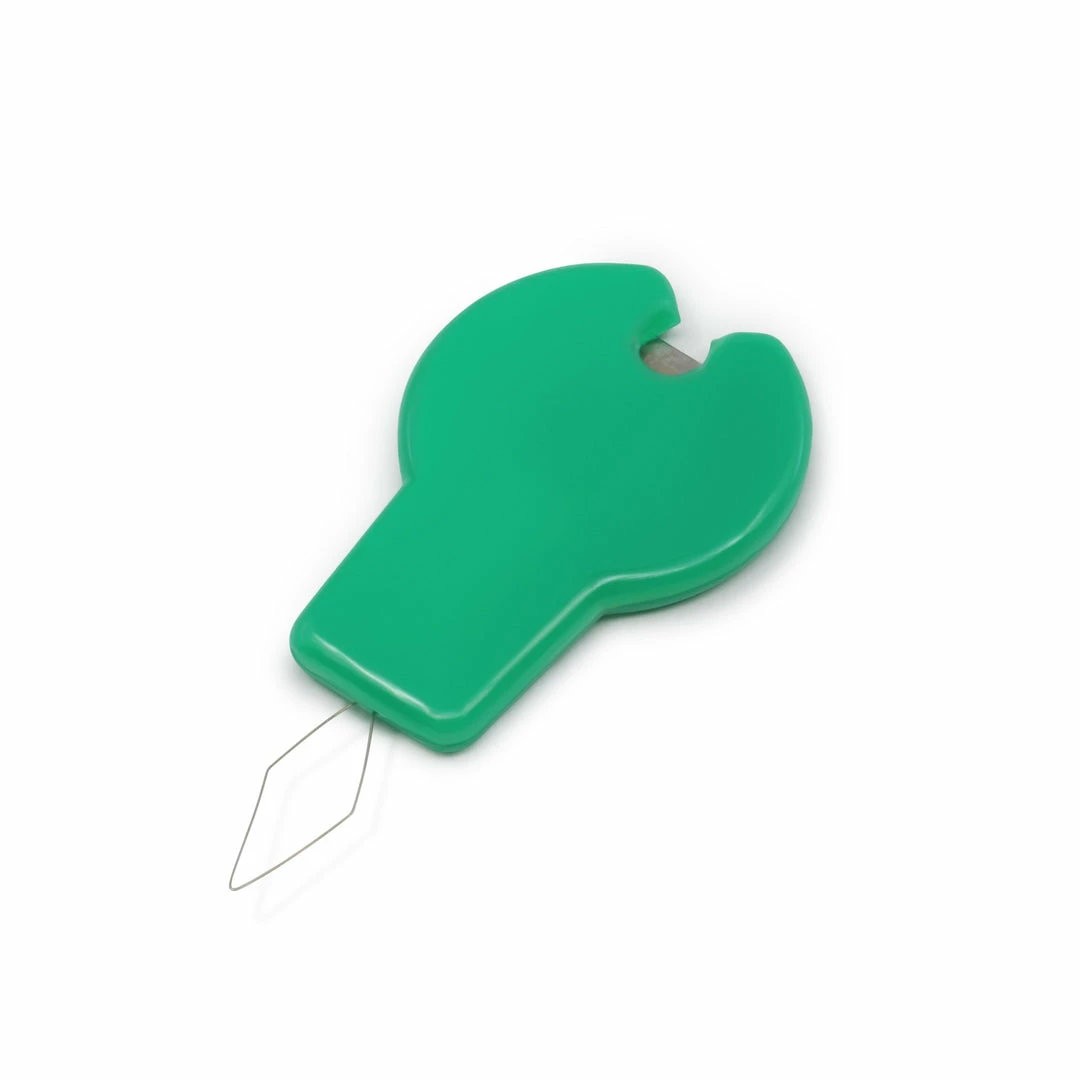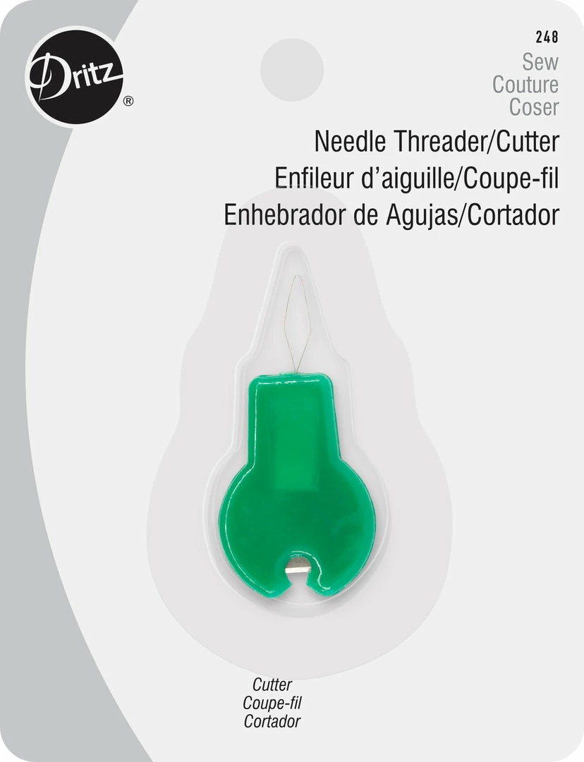 This Dritz Needle Threader & Cutter works for most hand and machine needles. The recessed design of the cutter protects your fingers from accidental cutting.