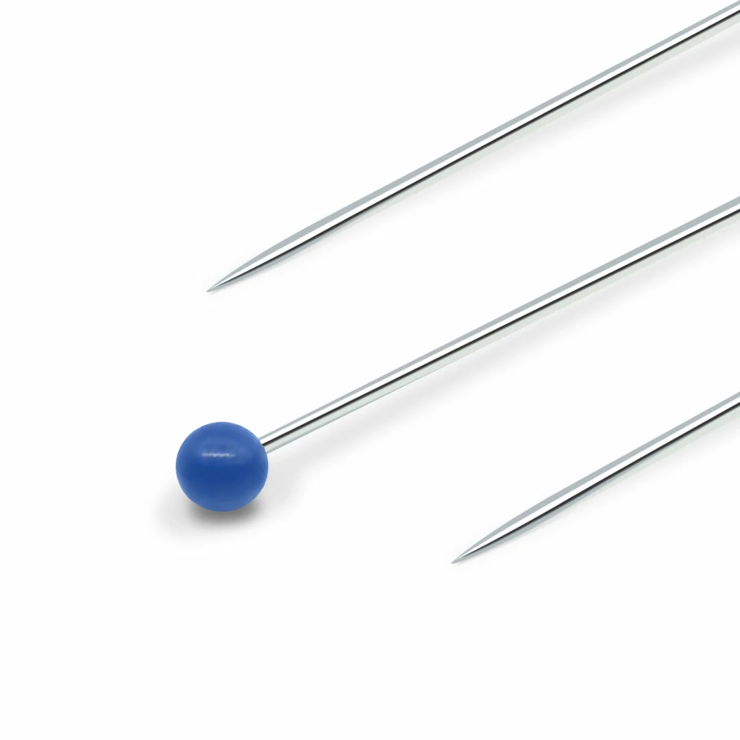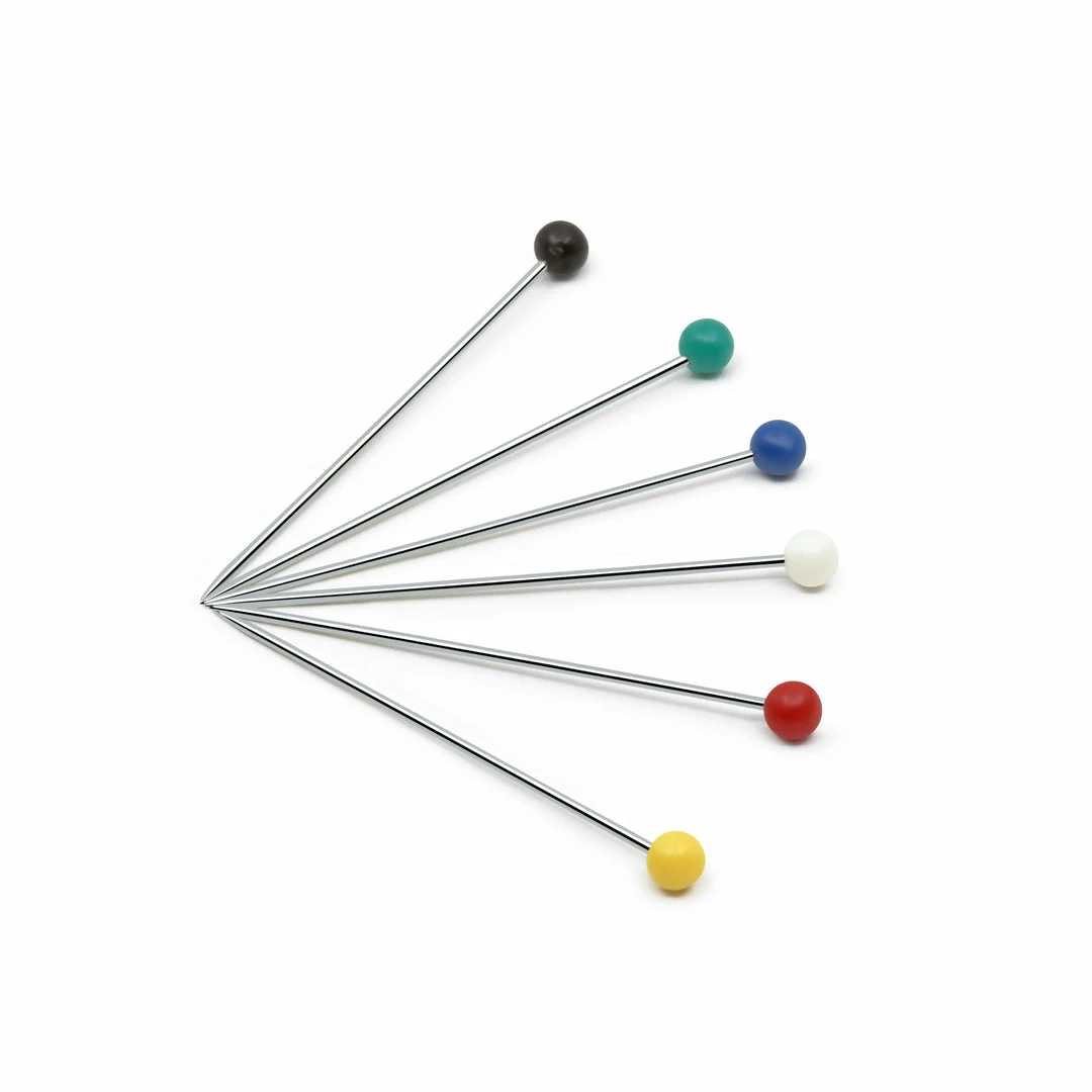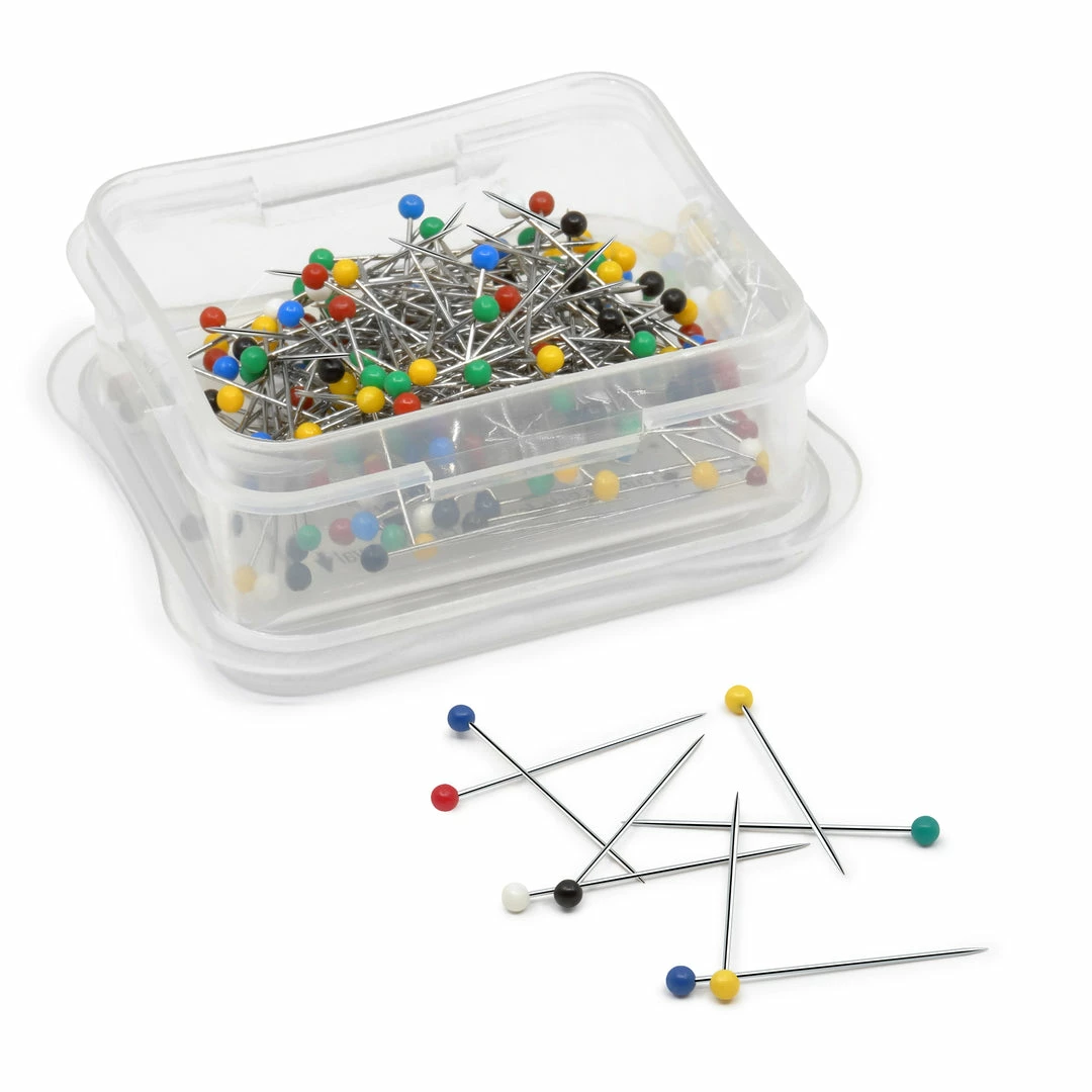 Ball Point Pins by Dritz have a rounded tip that are specially designed for knits and lingerie fabrics. These nickel-plated steel straight pins feature multi-colored heads and a 0.5mm extra fine shaft.
