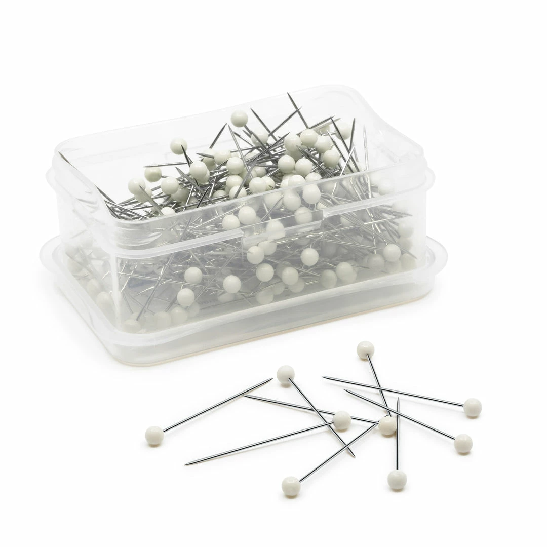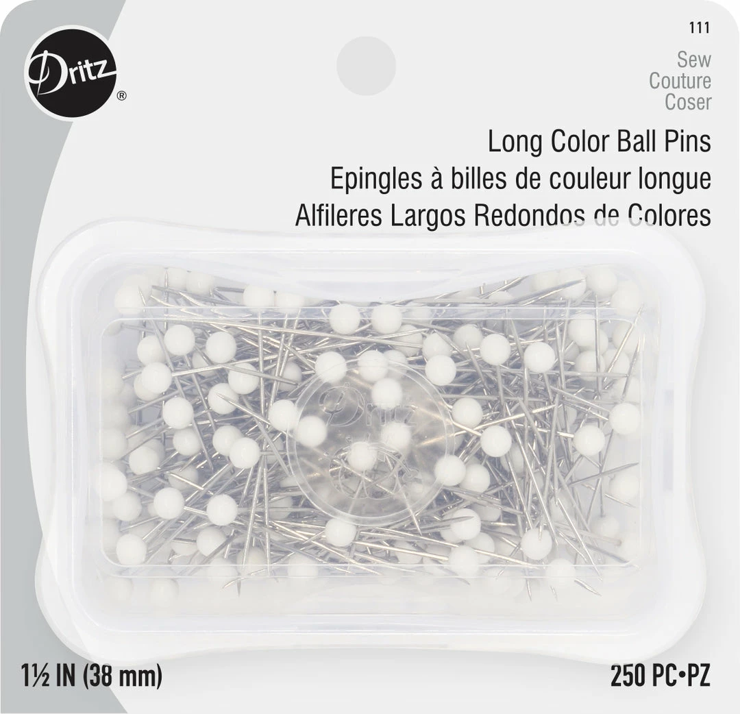 Dritz Long Color Ball Pins are ideal for quilt basting and home decor sewing. Large white heads are easy to see and handle. Long, .6mm nickel-plated steel shaft.