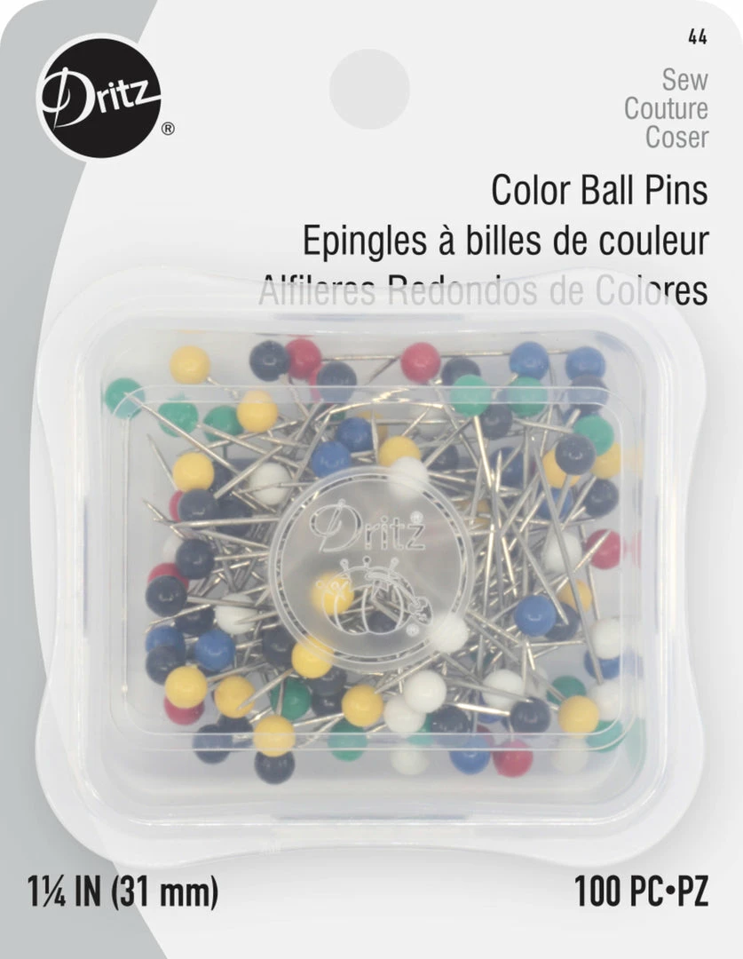Dritz Color Ball Pins are ideal for general purpose sewing and medium weight fabrics. These nickel-plated steel straight pins feature 4mm multi-color heads that are easy to see and handle.