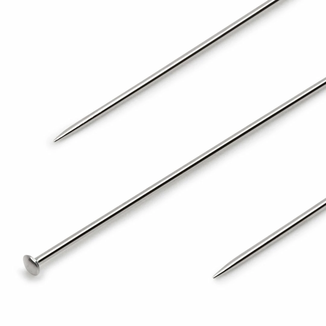 Dritz Super-Fine Sharp Pins are great for use with fine, delicate fabrics – including microfibers. These hardened and tempered pins will break rather than bend.