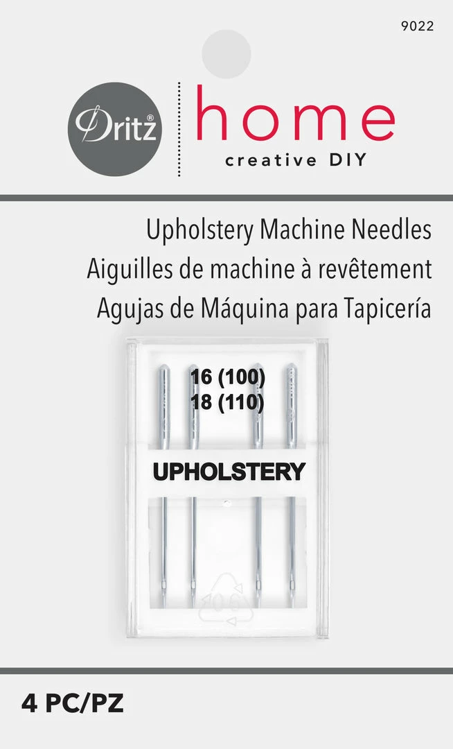 For machine based upholstery projects with fabrics and trims, equip your sewing machines with the Dritz Home Upholstery Machine Needles Pack of 4. The are designed for use with heavyweight upholstery fabrics and are compatible with most machine brands. This package comes with four needles of two different sizes each. Use the size 16 needles for light to medium weight fabrics and the size 16/100 and 18/110 needles for heavy weight fabrics.
