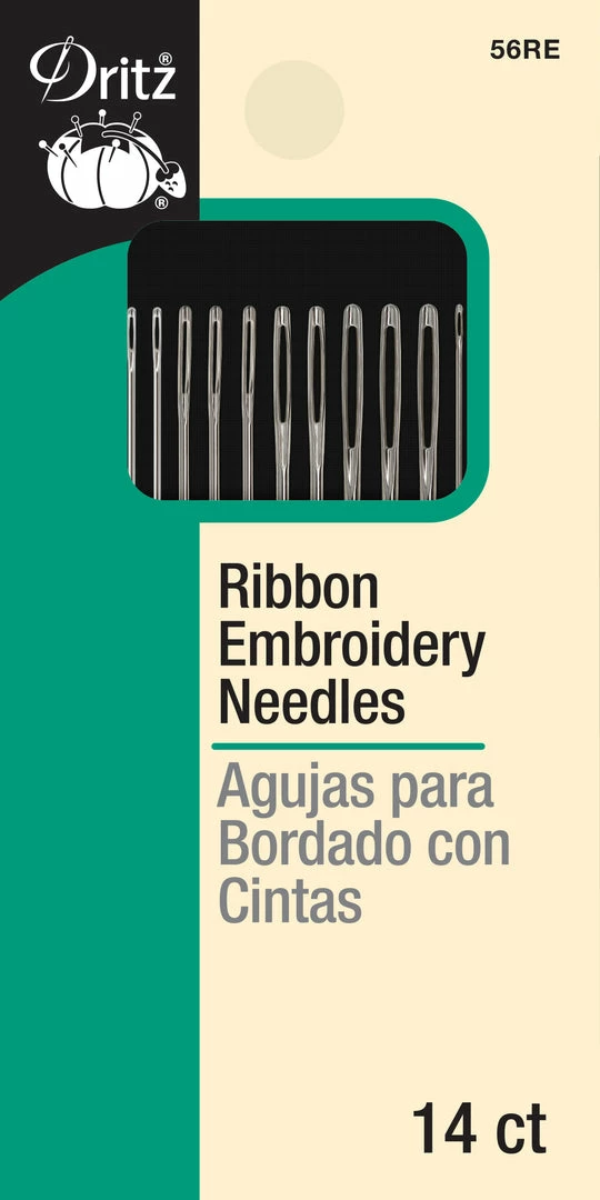 The Dritz Ribbon Embroidery Needles are ideal for ribbon embroidery on fabric or canvas. This needle assortment includes 2 – Beading Needles Size 10, 3 – Chenille Needles Size 20, 3 – Chenille Needles Size 18, 3 – Crewel Needles Size 8, and 3 – Tapestry Needles Size 24.