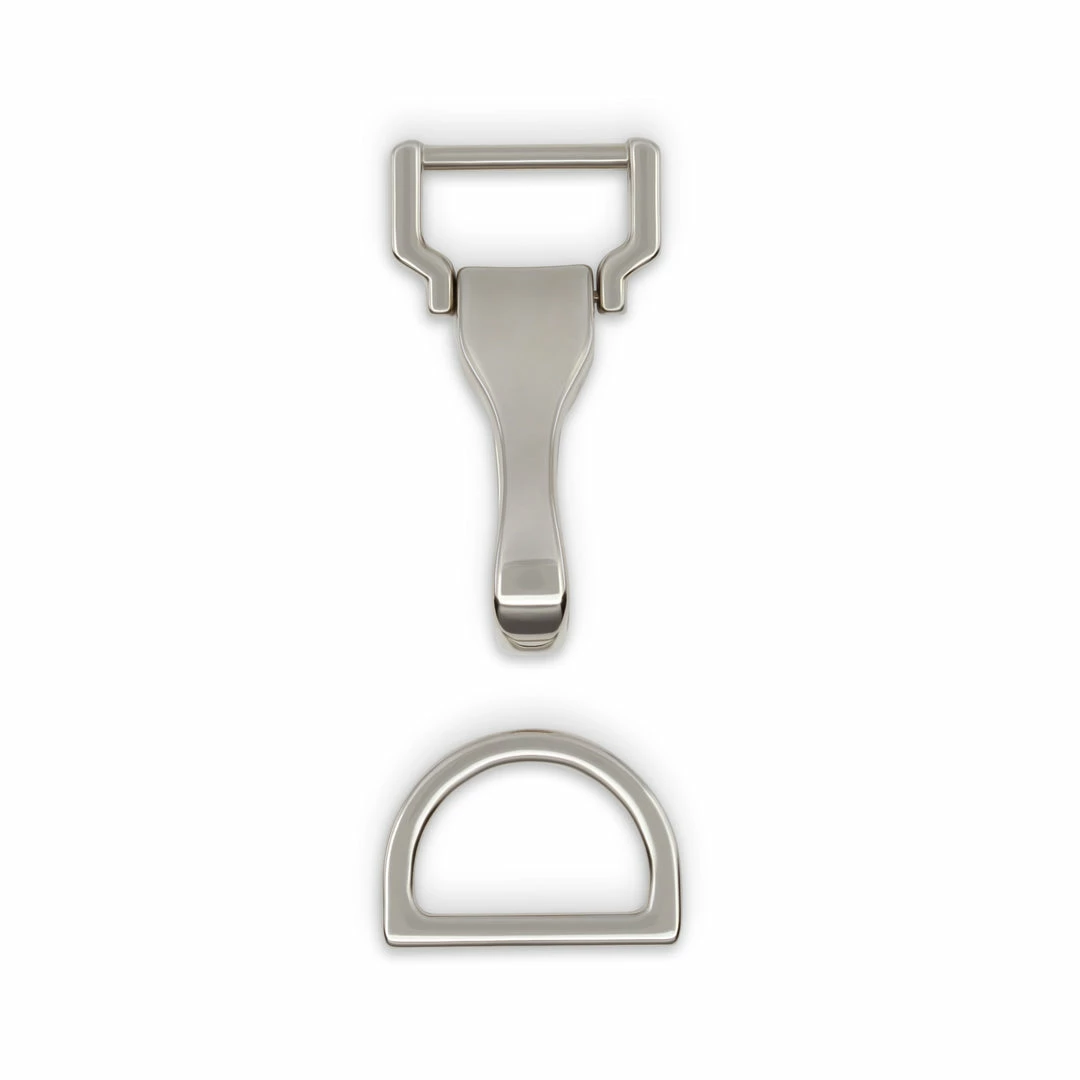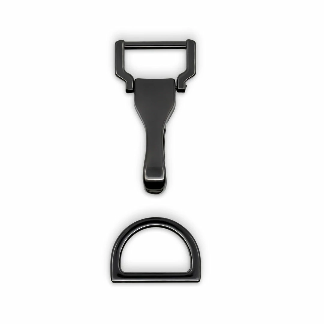 - D-Ring is for a 1″ wide strap/tab; hook will fit a 7/8″ tab