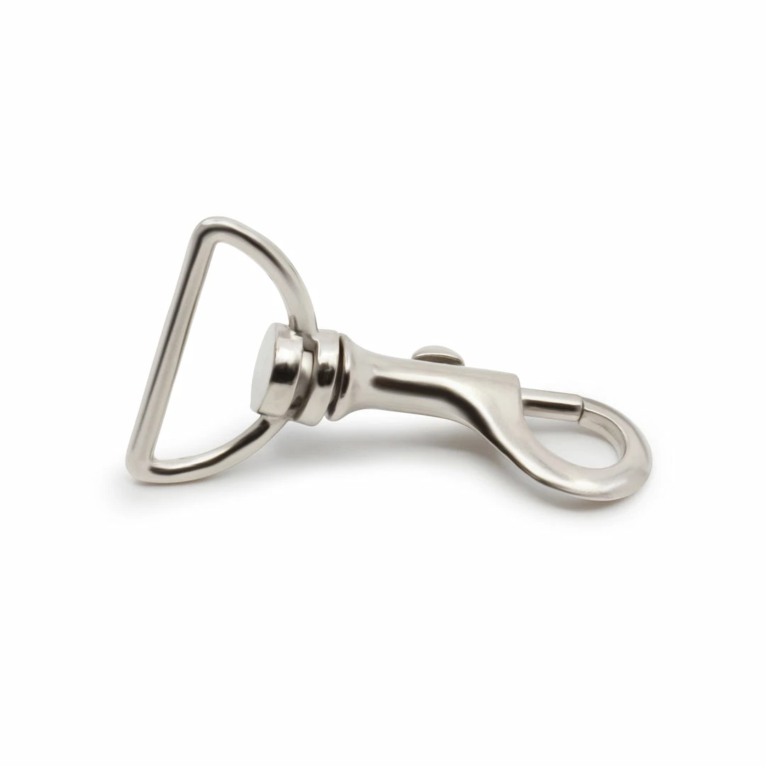 Dritz Swivel Hook in a nickel finish is a decorative hardware used for bags, totes and other graft projects. Use with D-rings or rectangle rings to attach handles to bags and create removable straps. Slip a strap through loop and attach to interior of bag for easy access to keys. For 7/8″ fabric, elastic, or belting.