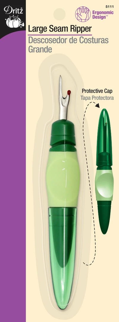 Get the Dritz Ergonomic Seam Ripper to complete your sewing kit. This package includes one seam ripper featuring a conical shape with soft finger grips that provide a comfortable grip and lessens stress for those with arthritis or carpal tunnel syndrome. Use this special ergonomic tool for removing stitches, seams and for opening buttonholes. The seam ripper also has a blade that is electronically ground for permanent sharpness and includes a safety ball on the tip to protect fabric.