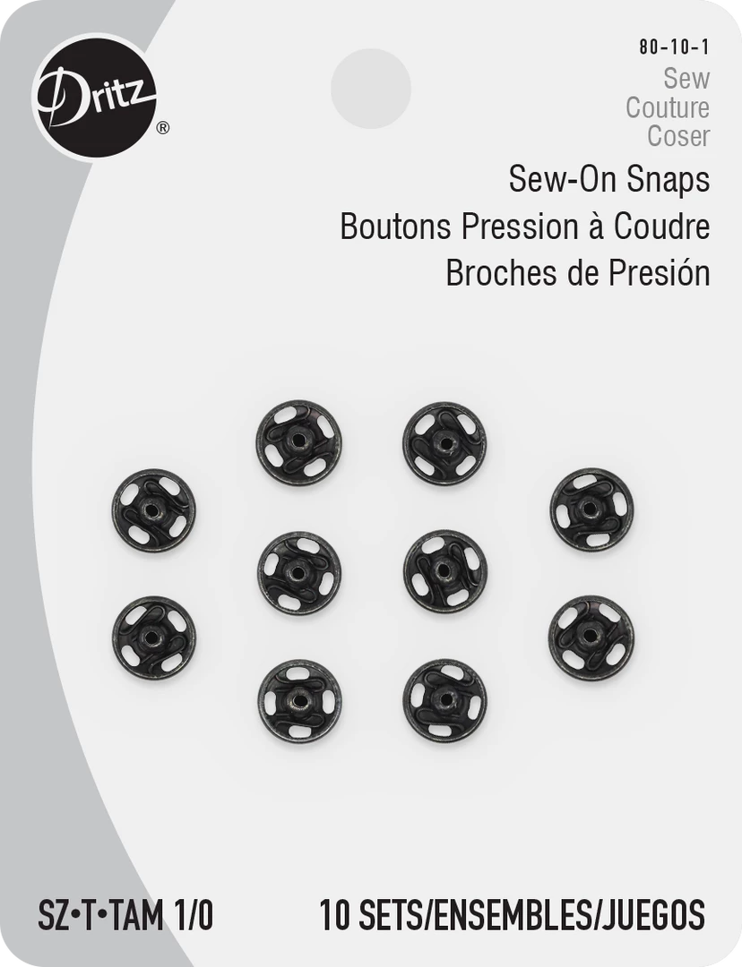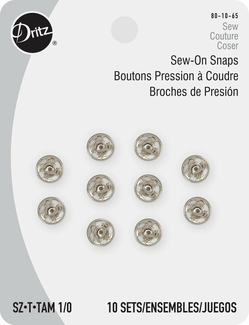 Use the Dritz Size 1/0 Sew-On Snaps Pack of 10 as garment closures for your coats, sweatshirts, cardigans and other apparel. Crafted for durability and toughness, these sew-on snaps are easy to use and a valuable addition to your sewing kit. Choose from a variety of sizes to suit your specific requirements.