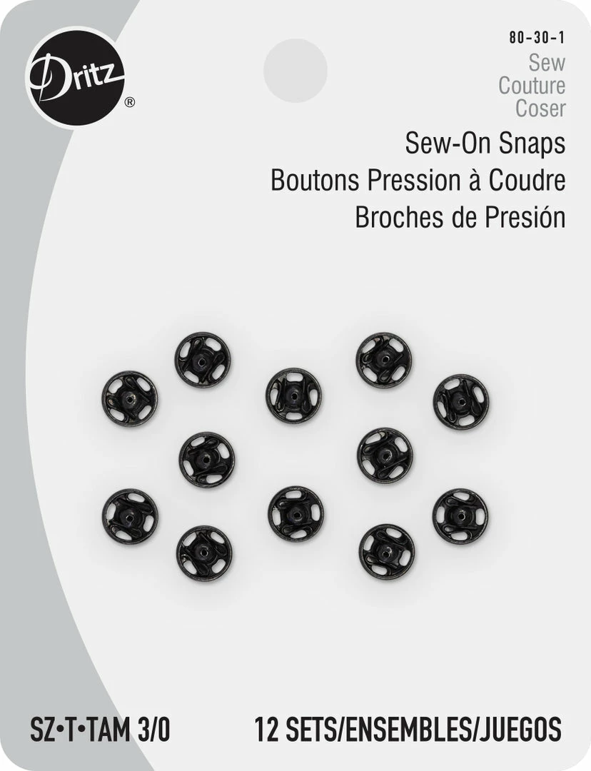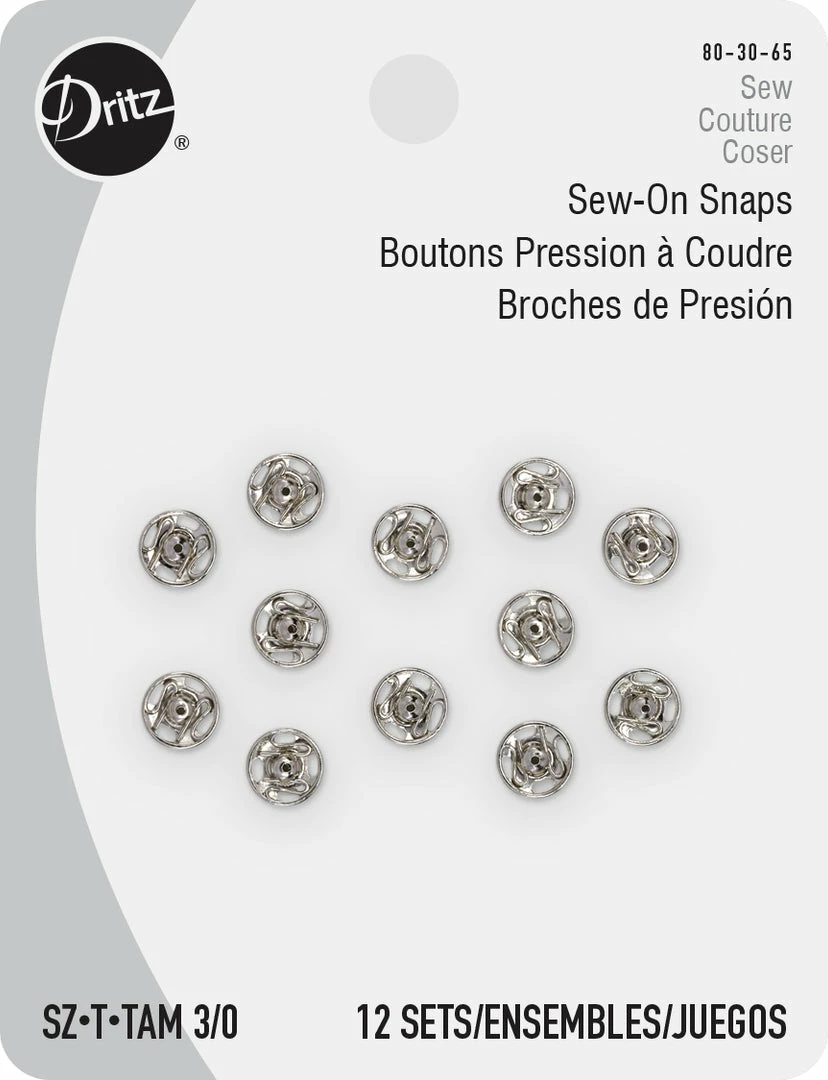 Use the Dritz Size 3/0 Sew-On Snaps Pack of 12 as garment closures for your coats, sweatshirts, cardigans and other apparel. Crafted for durability and toughness, these sew-on snaps are easy to use and a valuable addition to your sewing kit. Choose from a variety of sizes to suit your specific requirements.
