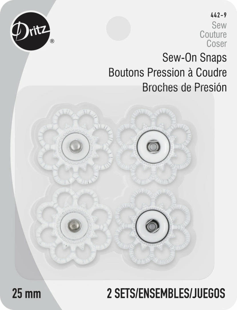Dritz Sew-On Snap is a functional closure for garments as well as the opening or pockets of purses, bags and totes; it can be used for sewing projects or added to store-bought accessories.