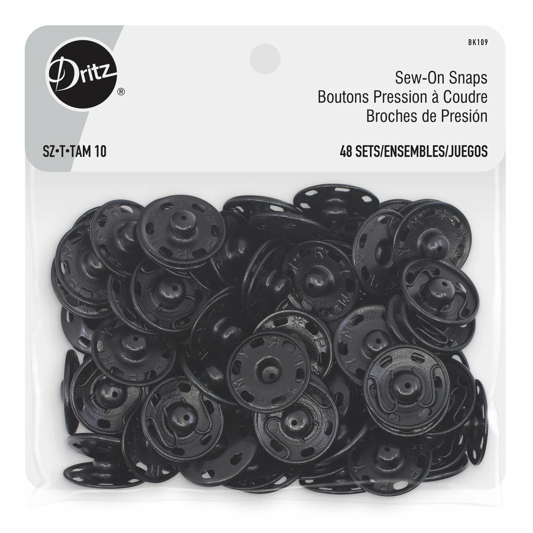 Dritz Sew-On Snaps are flat closures used to hold overlapping edges of fabric together and are ideal for use on clothing and accessories. These brass snaps have been specially crafted for durability and toughness and include six openings on the edges for stitching. Use them as garment closures on cardigans, coats and other apparel.