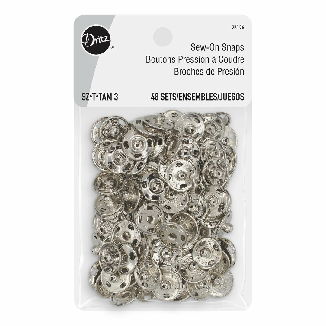 Dritz Sew-On Snaps are flat closures used to hold overlapping edges of fabric together and are ideal for use on clothing and accessories. These brass snaps have been specially crafted for durability and toughness and include four openings on the edges for stitching. Use them as garment closures on your blouses, shirts cardigans, coats and other apparel.