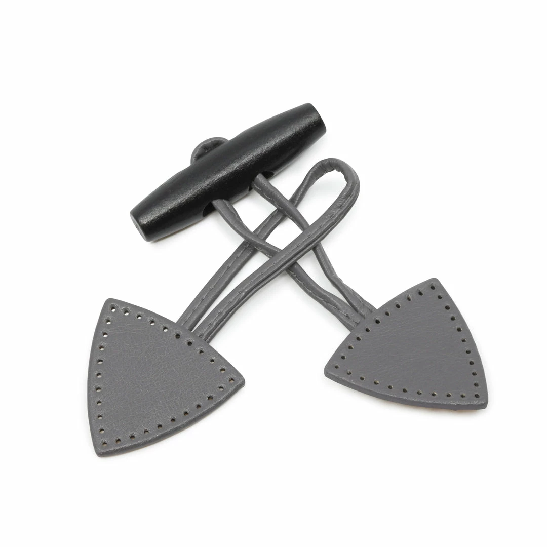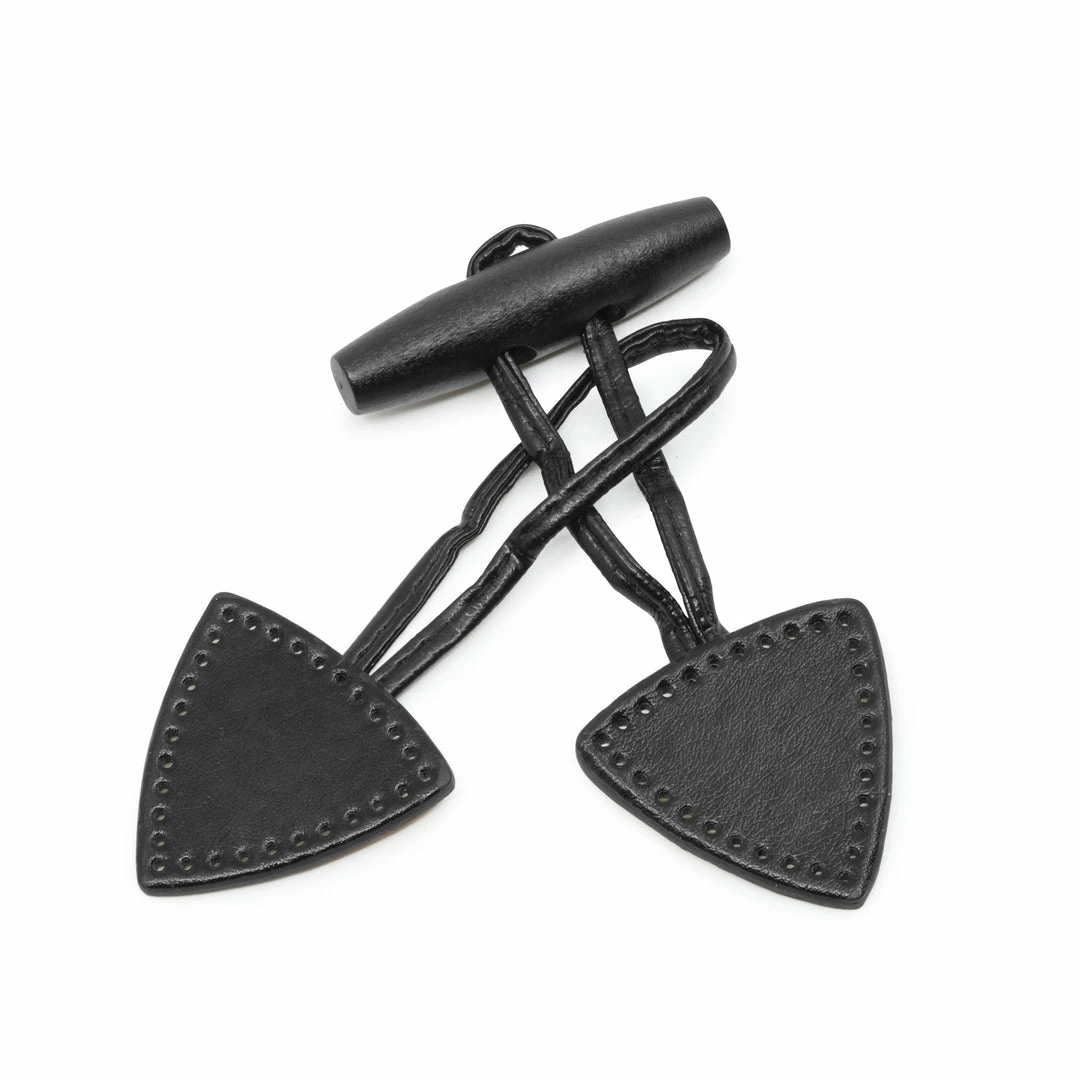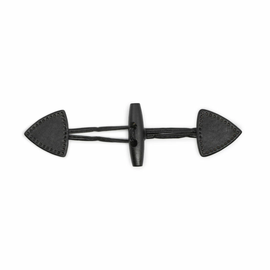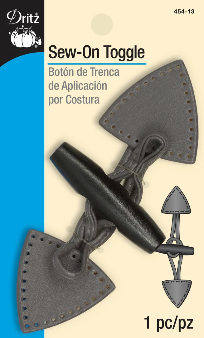 This Dritz sew-on toggle is a faux leather fastener with a wooden button and pre-punched stitching holes; it can be quickly and easily hand sewn onto a variety of garments and accessories.