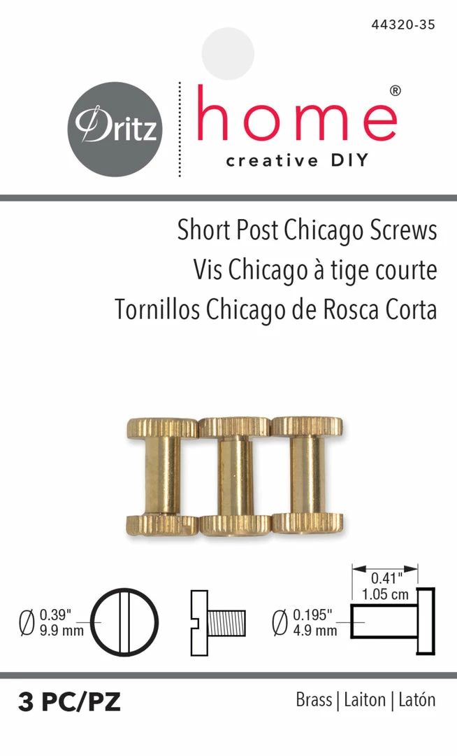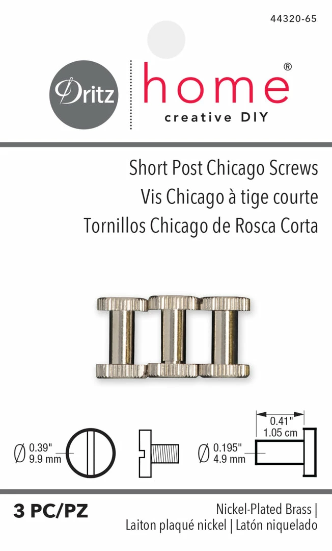 The Dritz Home Chicago screw is a type of fastening hardware consisting of two parts: a flanged barrel nut post and a flanged screw. These two parts of each Chicago screw thread together to fasten multiple layers of material, such as fabric, leather and paper. Dritz Home Chicago screws are used by DIY enthusiasts, craftsmen and makers for a variety of projects and hobbies. Common uses for Chicago screws include: bookbinding, framing and attaching handles or straps to other surfaces such as decorative accessories or furniture.