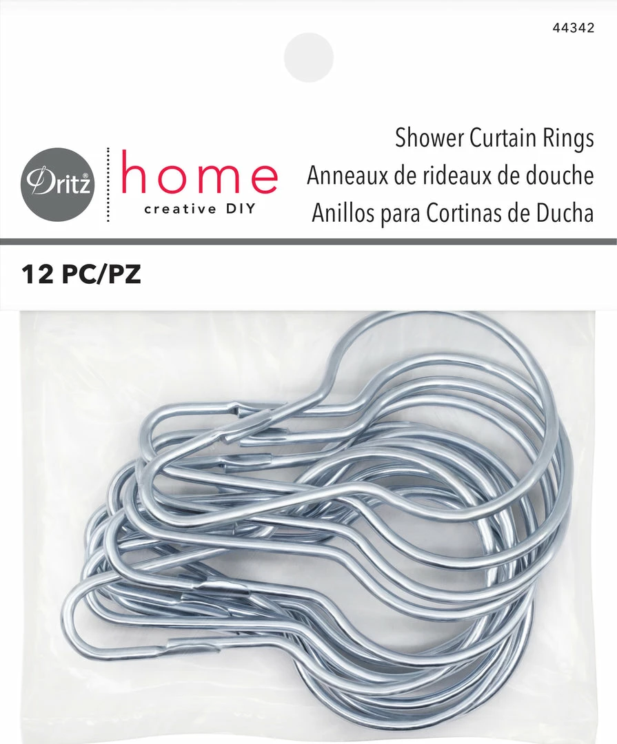 Use the Dritz Home Shower Curtain Rings to hang shower curtains along with other kinds of drapery. The rings clip shut for secure closure, and may be used with shower curtains or balloon shades as well as a keeping a variety of small items together such as keys, sticker packages, toys etc. This package contains 12 Shower Curtain Rings, Size 2-3/4 x 1-1/2″ wide.