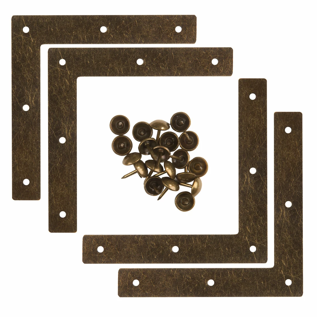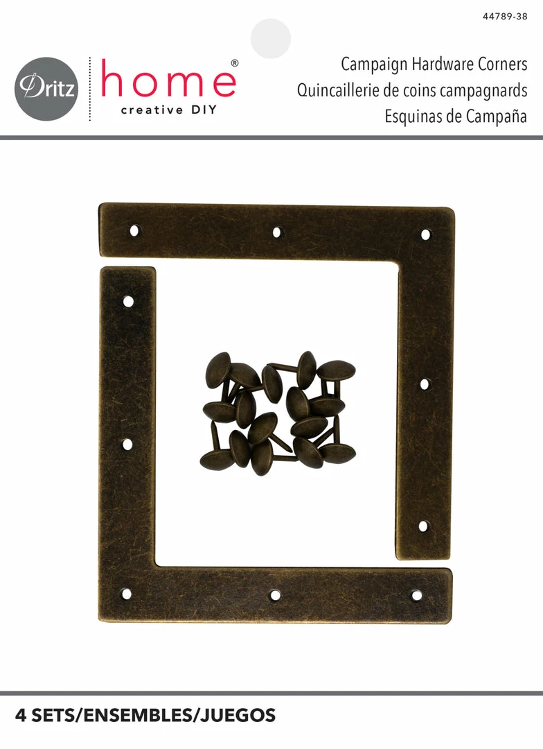 Dritz Home campaign hardware is decorative non-functioning hardware that is applied to the surface of woodworking projects to give them a professional finish – simply nail it into place using the provided nails. This “L” shaped hardware can be aligned in the corners of furniture pieces or accessories, but it can also be artfully arranged to create interesting surface patterns and designs. Campaign hardware is ideal for a variety of DIY projects such as drawers, chests, trays, boxes, mirrors and more.