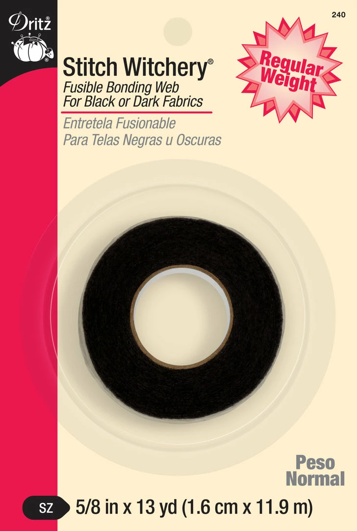 Dritz Stitch Witchery fusible bonding web is great for quick fixes and easy no-sew projects. Available in assorted weights and widths for all your sewing or crafting needs. Great for hems, trims and belts. This product is machine washable and dry cleanable.