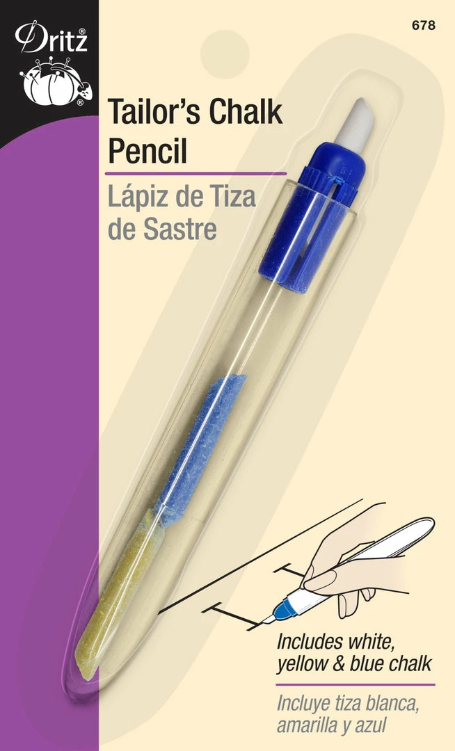 Tailor’s Chalk Pencil is a great sewing tool for marking construction details and alterations from pattern to fabric. This package contains three chalk pencils for safely marking fabric and patterns. Always test pencil on swatch of fabric you will be using to be sure marks can be removed satisfactorily.