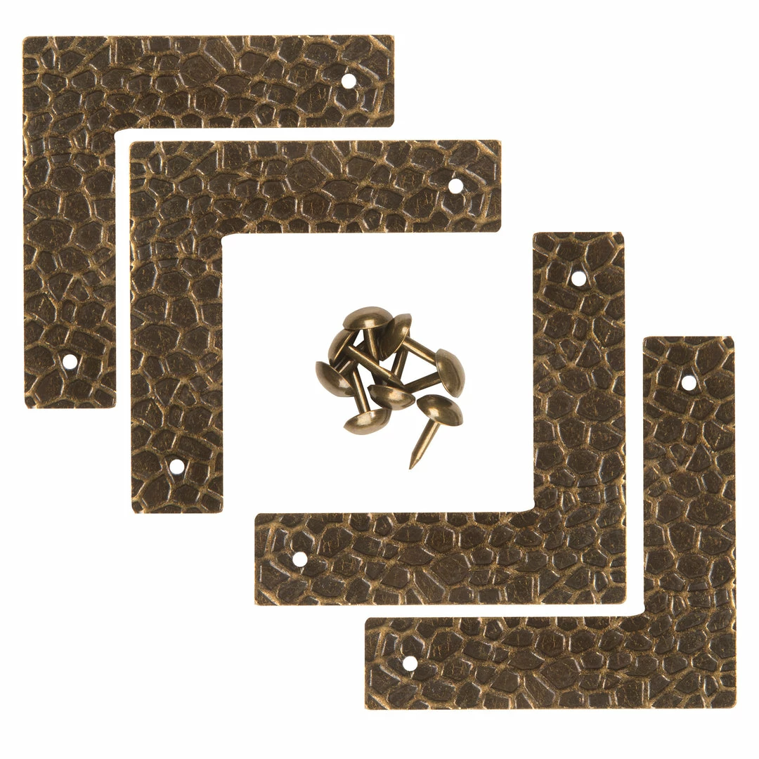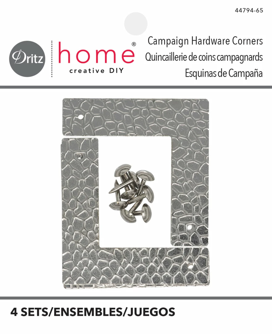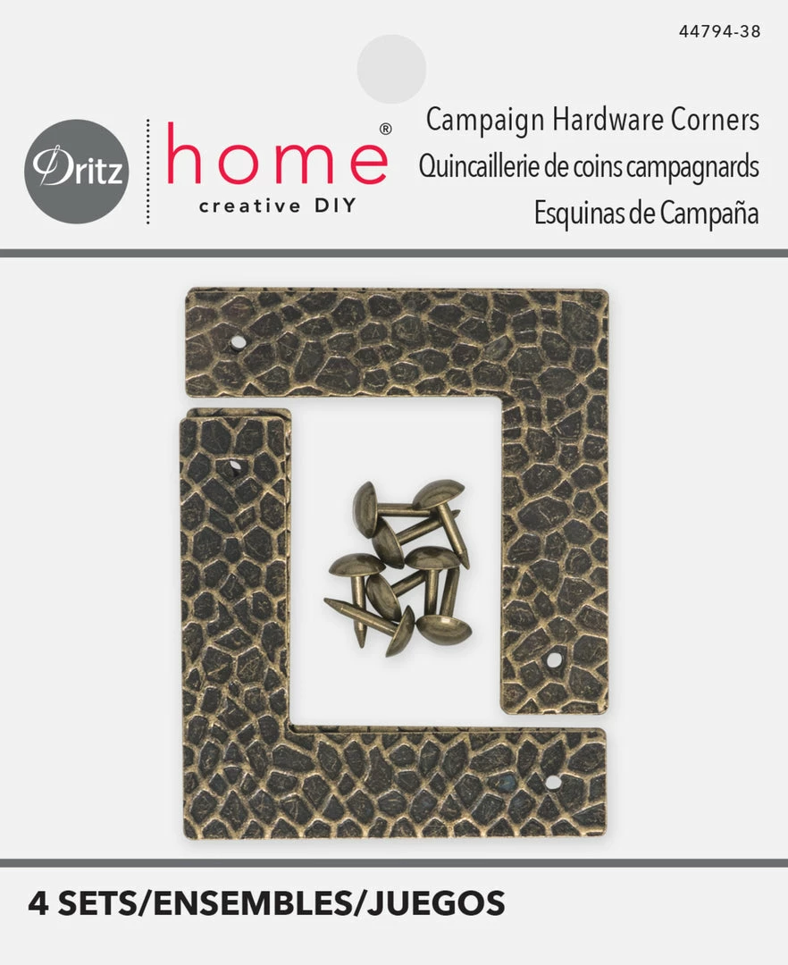 Dritz Home campaign hardware is decorative non-functioning hardware that is applied to the surface of woodworking projects to give them a professional finish – simply nail it into place using the provided nails. This “L” shaped hardware can be aligned in the corners of furniture pieces or accessories, but it can also be artfully arranged to create interesting surface patterns and designs. Campaign hardware is ideal for a variety of DIY projects such as drawers, chests, trays, boxes, mirrors and more.