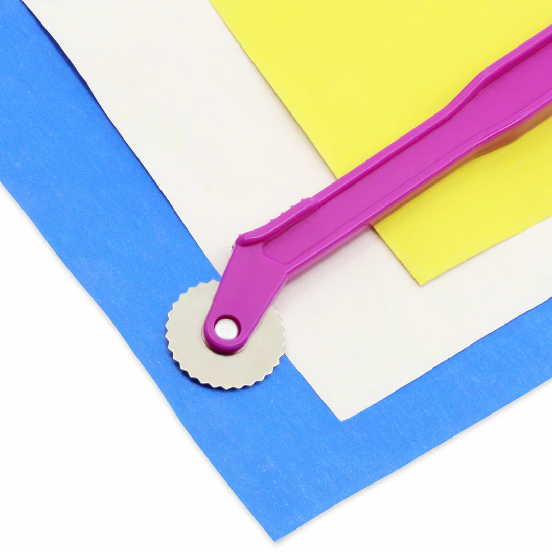 - This kit includes 1 serrated tracing wheel and 3 sheets of wax-free tracing paper in white, yellow and blue (5-1/8″ X 19-1/2″)