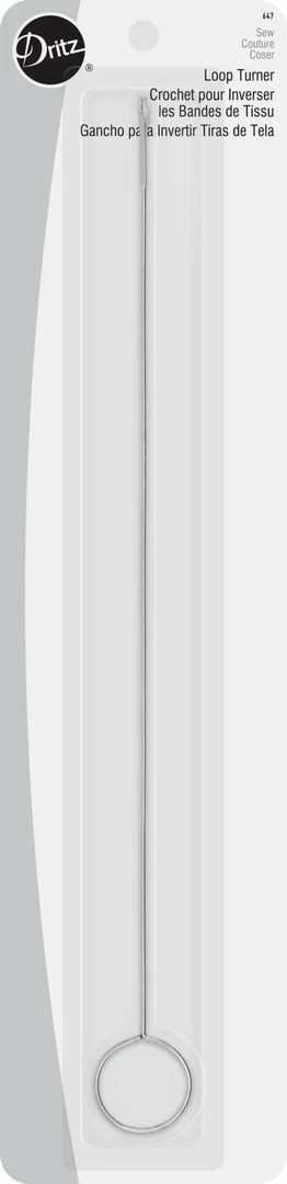 Use the Dritz Loop Turner 9-1/2″ for fabric cylinders that need to be turned right side out to make narrow straps, button loops and frog closures. This simple and handy tool slides through the bias tubing while the latch hook on the end catches the end of the fabric and pulls it through the tube. It is perfect for making spaghetti straps, frog closures, button loops, Chinese ball buttons, purse straps and more.