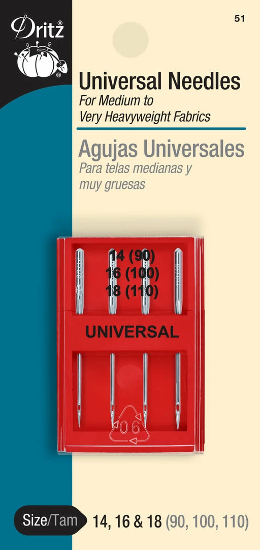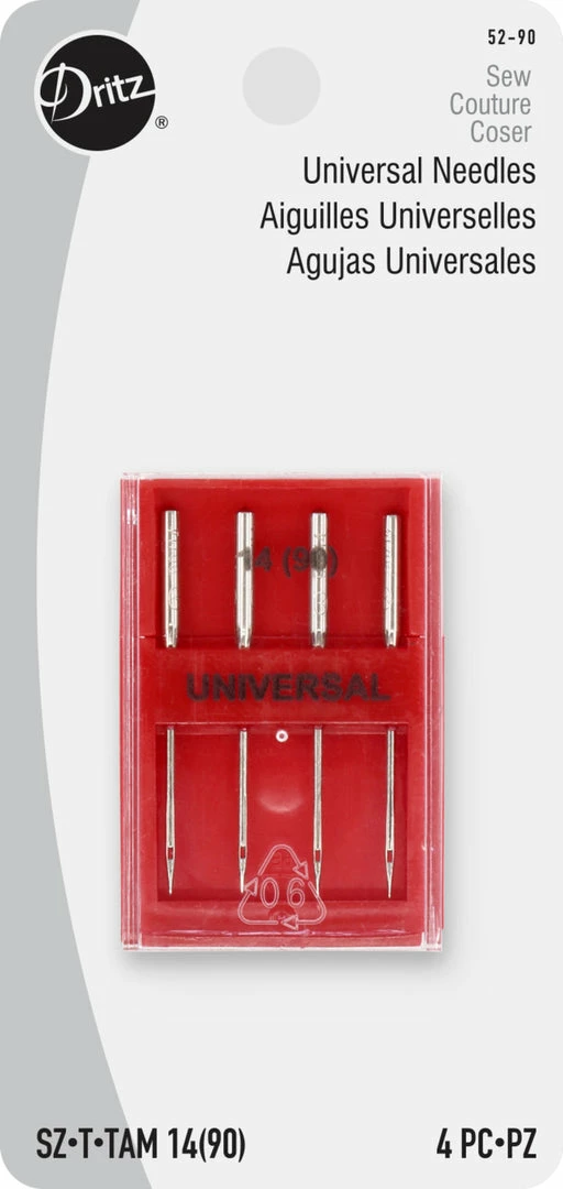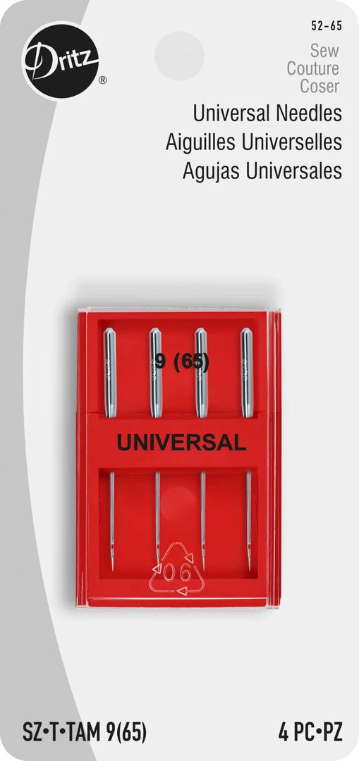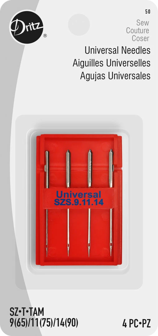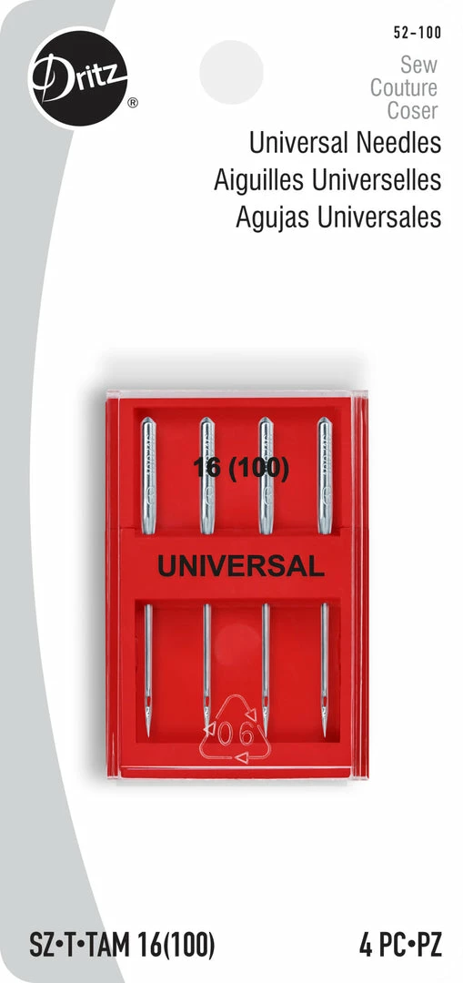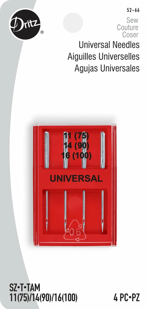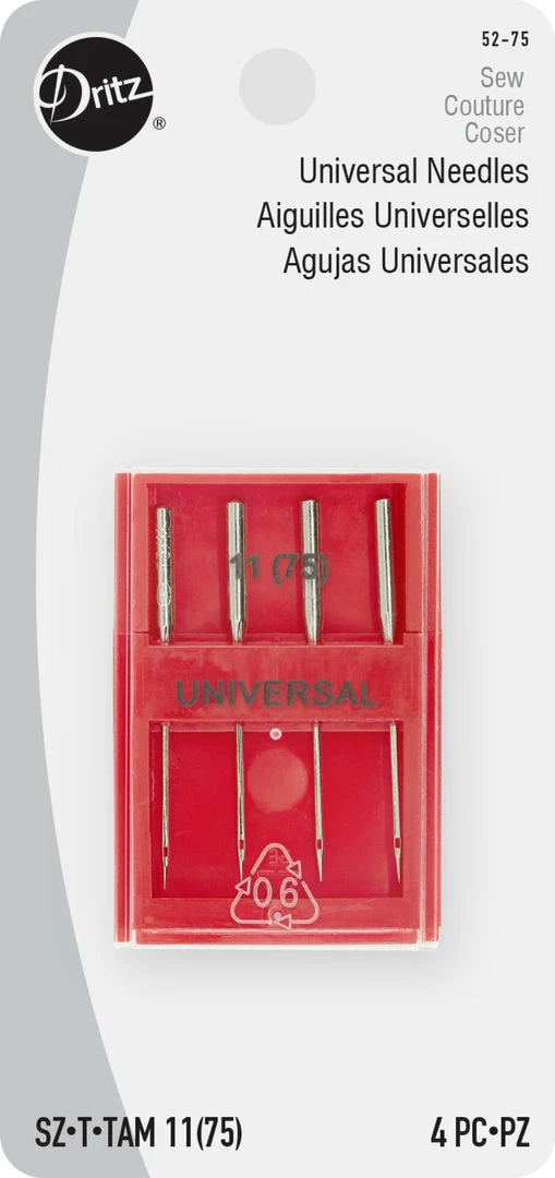The Dritz Universal Needles are finely-crafted universal machine needles and slip through the weave of fabrics without causing runs. Select needle sizes based on the weight of your fabric.