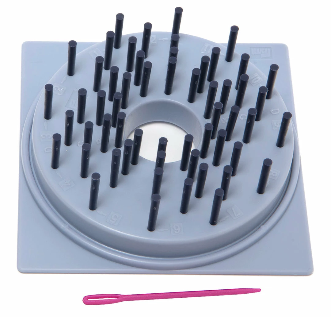 Create beautiful multi-layered flowers using this Dritz LoRan Flower Loom Kit. Up to four layers can be applied to each flower, just move the pegs and create flowers from 1-3/4″ to 4″ in diameter. Flower designs possible to make include tassels, long tubes, flat panels and more. This package contains one plastic loom, 60 plastic pegs, one plastic needle and instructions.