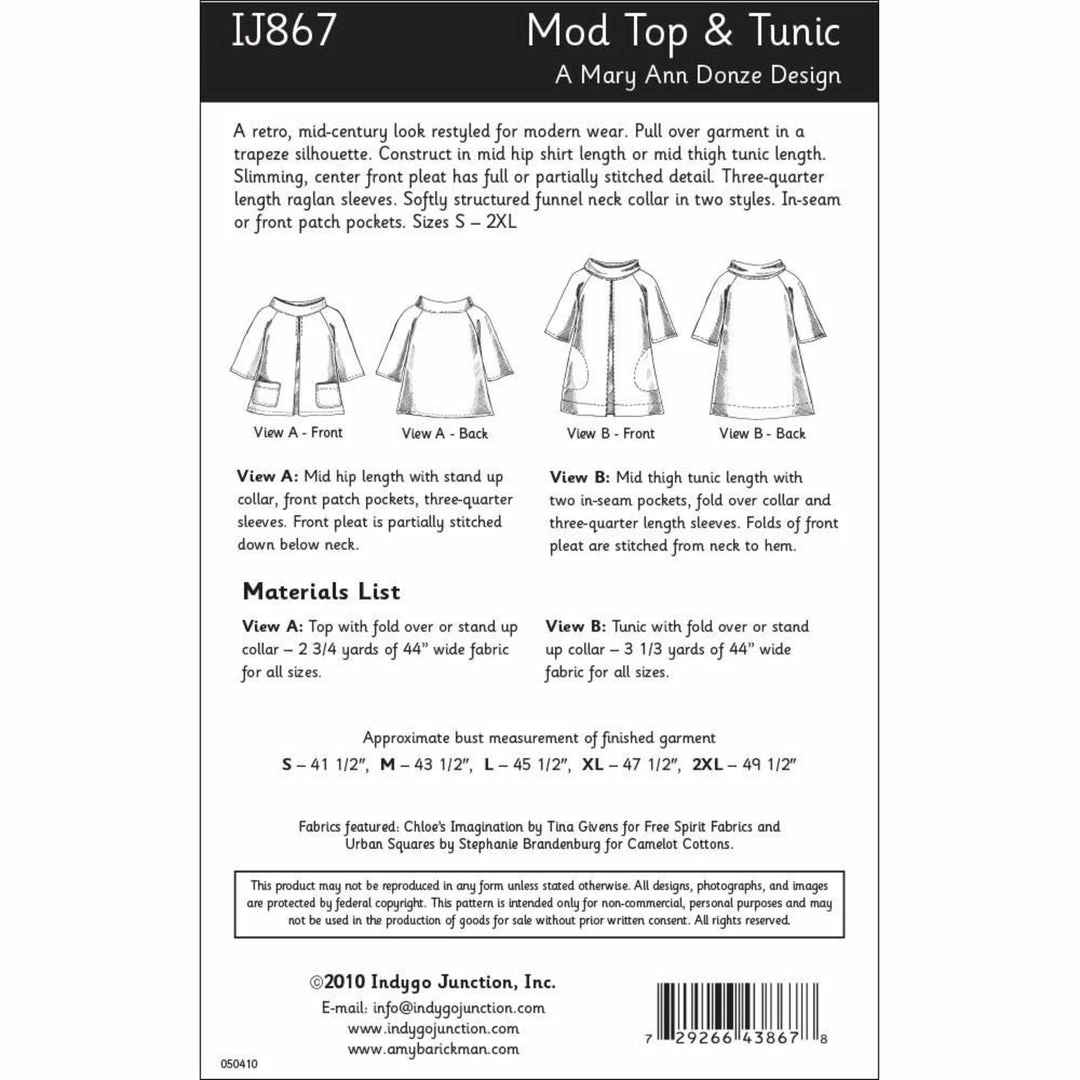 A retro, mid-century look restyled for modern wear. Pull over garment in a trapeze silhouette. Construct in mid hip shirt length or at-the-knee tunic length. Slimming, center front pleat has full or partially stitched detail. Three-quarter length raglan sleeves. Softly structured funnel neck collar in two styles. In-seam or front patch pockets. Sizes S-2XL.