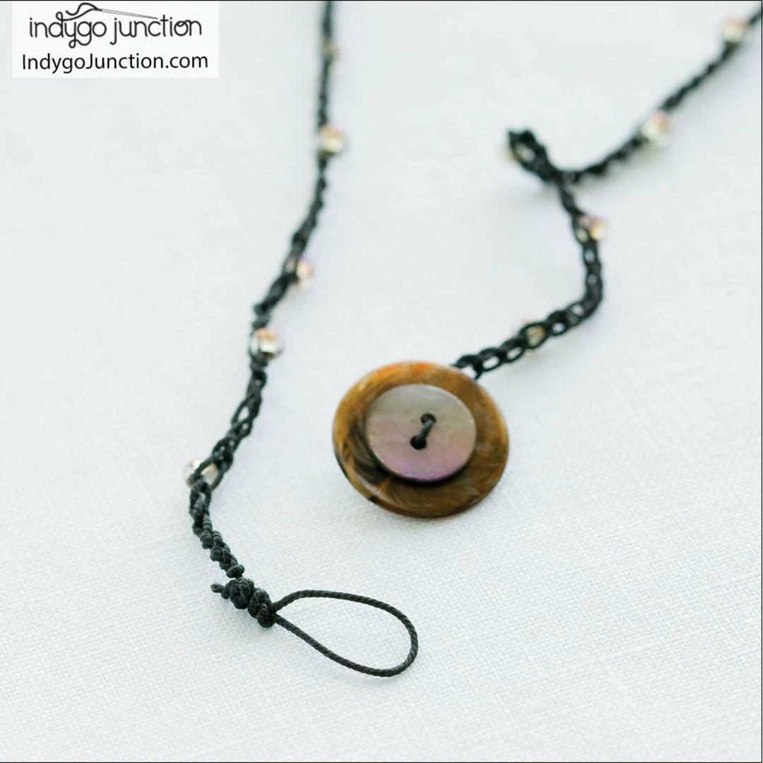 Charming beads and a bit of crochet, add a graceful twist to this button necklace. The technique beautifully showcases larger, standout pieces from your button collection. This pattern is available as a PDF download only.
