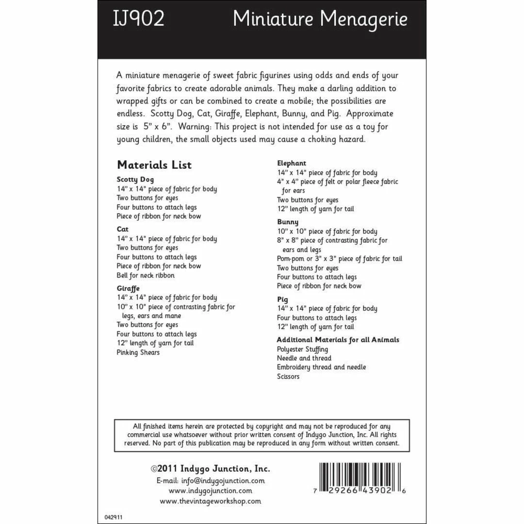 A miniature menagerie of sweet fabric figurines using odds and ends of your favorite fabrics to create adorable animals. They make a darling addition to wrapped gifts, can be combined to create a mobile, the possibilities are endless. Scotty Dog, Cat, Giraffe, Elephant, Bunny, and Pig. Approximate size is 5″ x 6″. Warning: This project is not intended for use as a toy for young children, the small objects used may cause a choking hazard.
