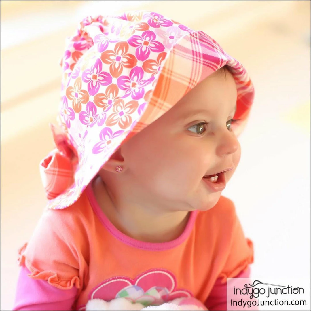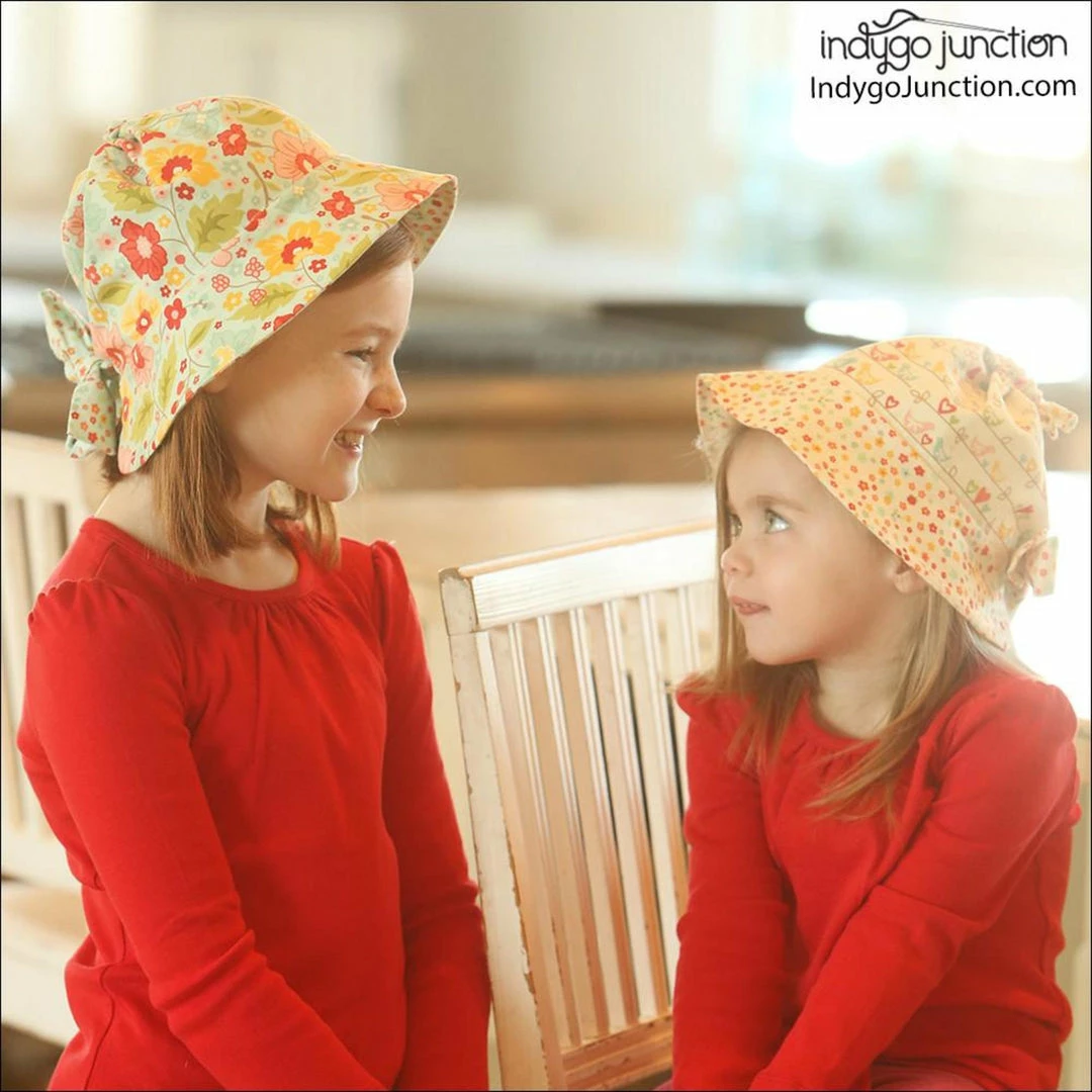 The Simple Sunbonnet is easy to construct and takes less than a yard of fabric. Make it in cottons for the hot beach sun or in soft corduroy for the brilliant fall sunshine. Can be made from one fabric or two or even reversible for double the fun. Three sizes included: infant-12 months; 18 months-3 yrs; & 4-6 yrs.