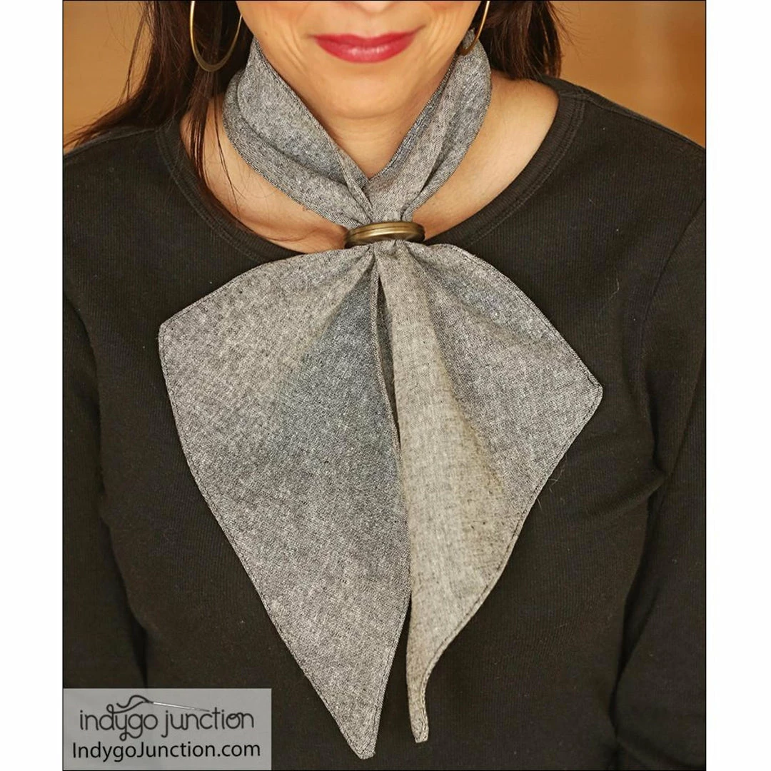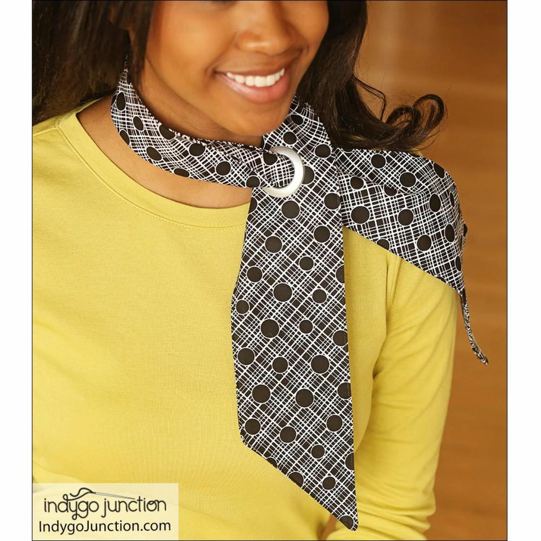 Bring sophistication to your style with one of four slip-thru scarves. Strip piece your favorite prints to create View A and use a buttonhole for the pass-thru. View B has a pleated flair that is held together with a curtain grommet. View C is a simple style that features a grommet pass-thru and View D is a shorter style that slips through a fabric casing.