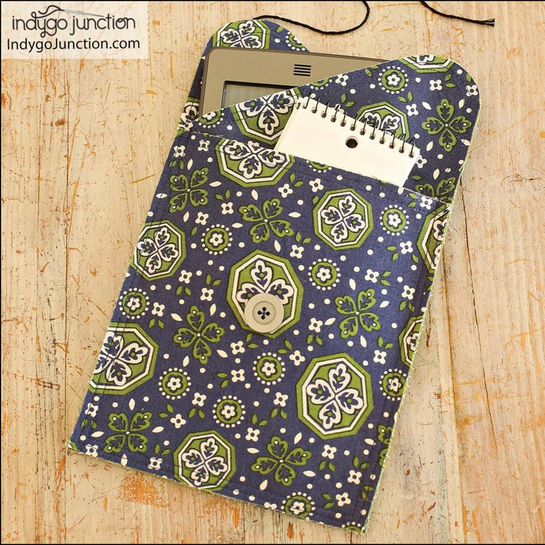 A clever tote to hold your tech gear sized to fit tablets, eReaders, cell phones or business cards. Fast and easy to make with 2 pockets one for your electronics and the other for whatever else you need to carry. Construct from Crossroads Denim, recycled denim, quilters cotton or felt. The raw edge construction makes this a fast and stylish project. Closed sizes: Business Card: 4-1/4″ W x 3-1/4″ H; Cell Phone: 4″ W x 5-1/4″ H; eReader: 7″ W x 8″ H; Tablet: 9″ W x 10-1/2″ H.