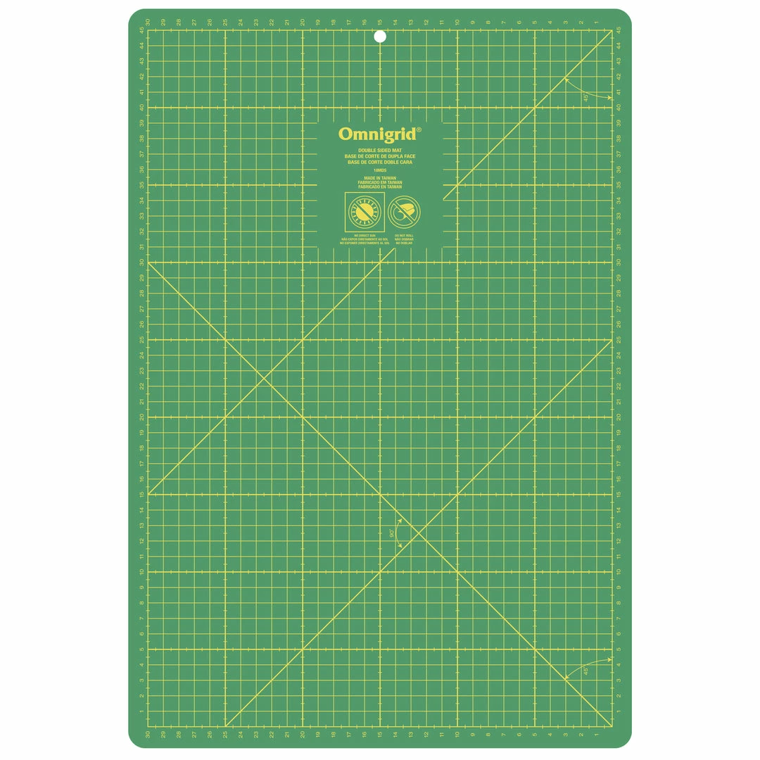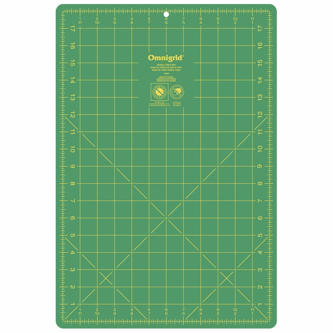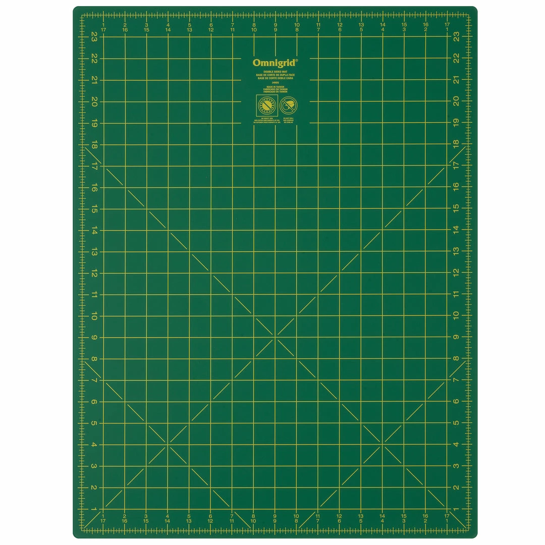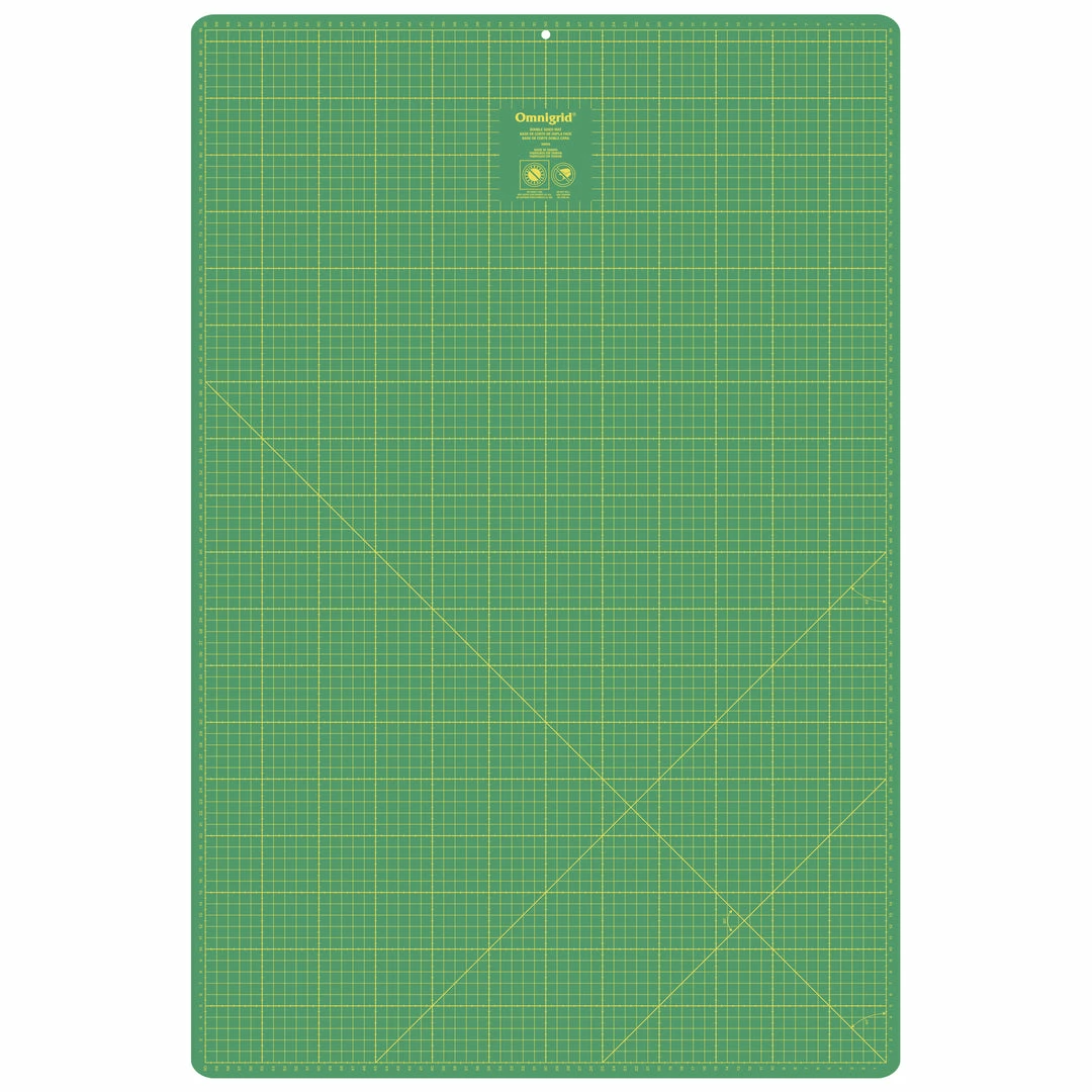 The small Omnigrid double-sided cutting mats are ideal for use in quilting for cutting fat quarters and smaller pieces of fabric; their versatile size is portable and convenient for travel, and also ideal for smaller sewing, quilting and crafting areas. The large Omnigrid double-sided cutting mats are suitable for cutting borders and bias strips; they’re also convenient for measuring fabric by the yard.