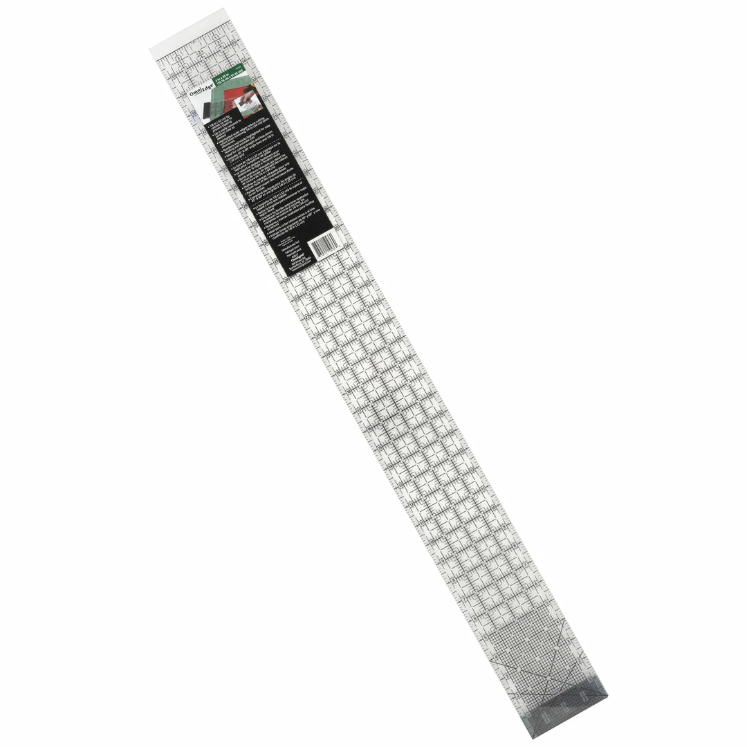 The OmniEdge ruler has a lip that catches on your cutting mat to prevent slipping during cutting; the ruler’s lip, or channel, is easily removed to position the ruler as desired.