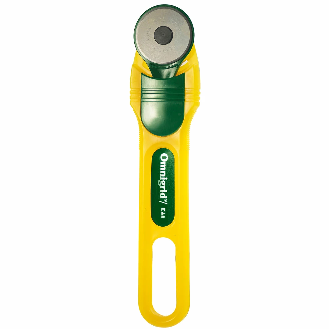 The Omnigrid rotary cutter is used for cutting materials for quilting, sewing, DIY home decorating and crafting projects – it will cut fabric, paper, leather, vinyl, mat board and foam core in any direction.