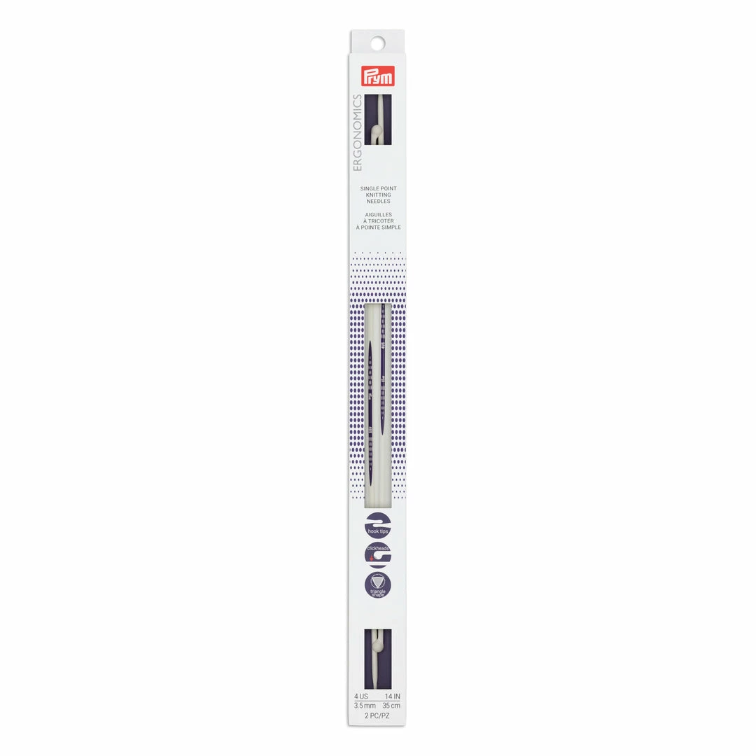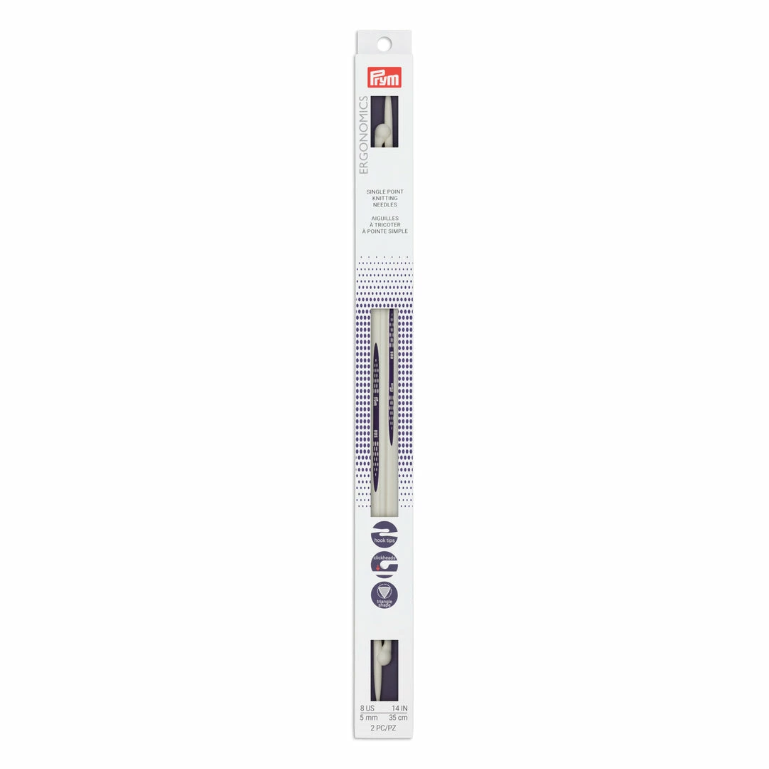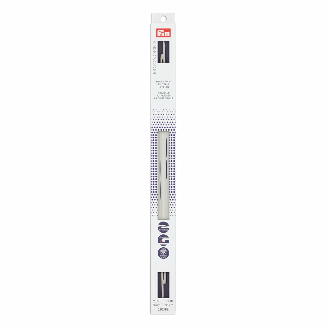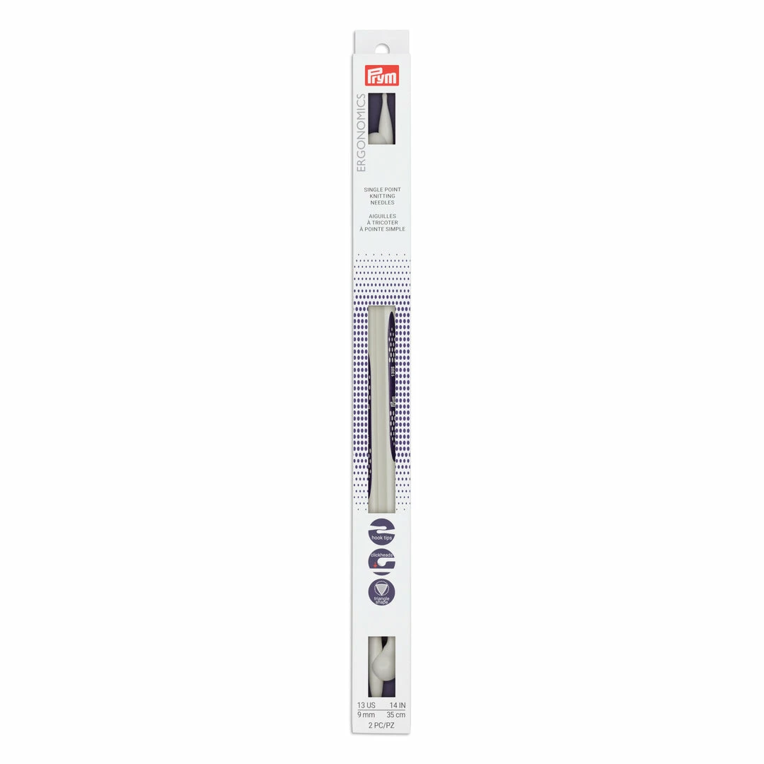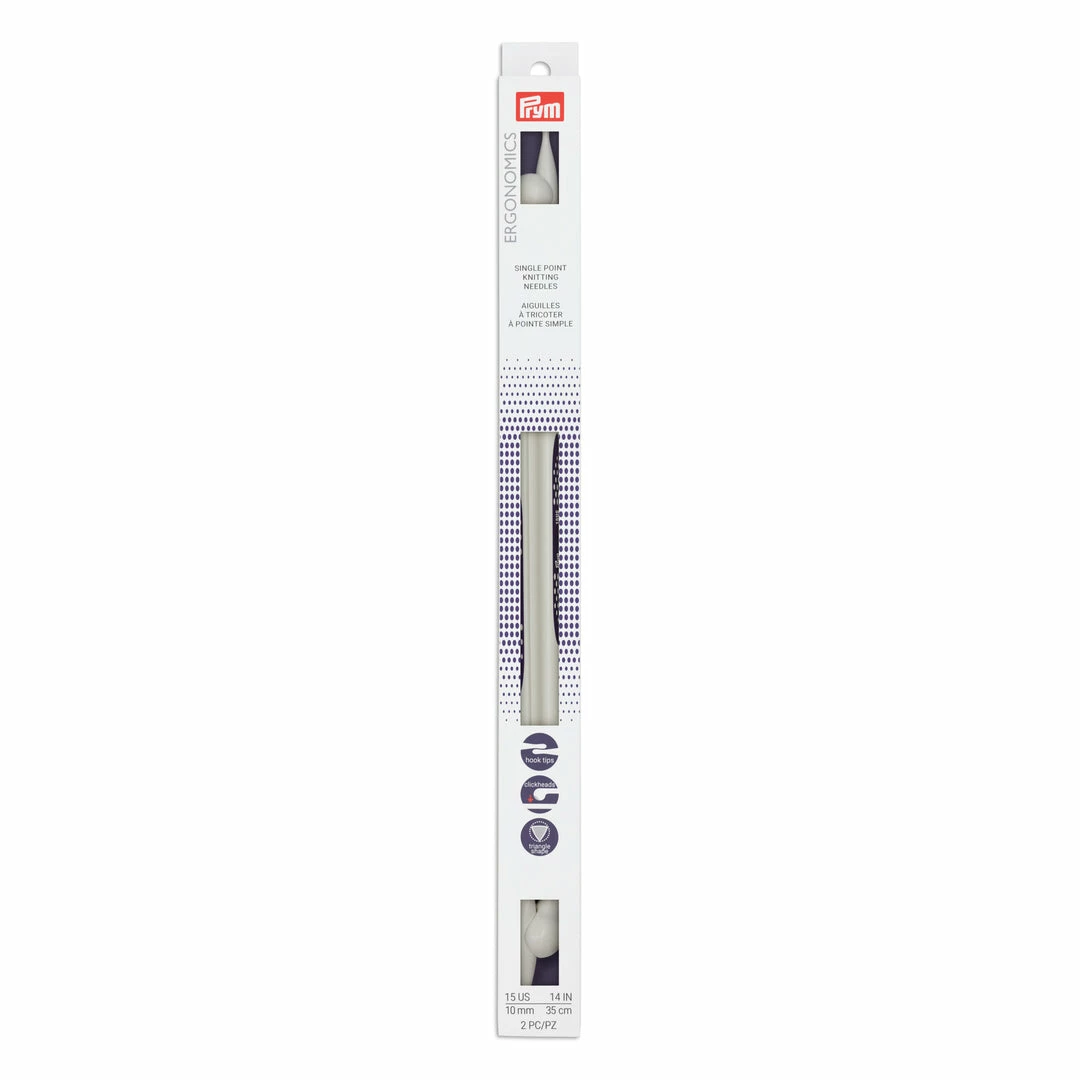 Prym Ergonomic Single Point Knitting Needles will revolutionize your knitting. The patented teardrop shaped tip and triangle body made from high-performance plastic make these needles ideal for both beginners and advanced knitters.