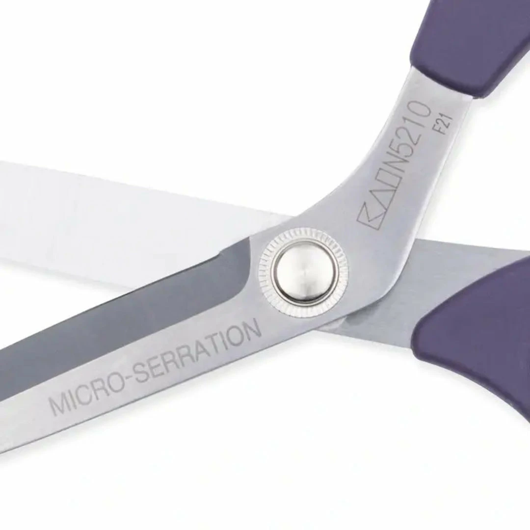 The dressmaking shears ‘Professional’ Xact from KAI with micro-serration are ideal when you need to cut silk or synthetic fibres. The special additional grinding of the blades consistently prevents difficult fabrics from slipping. The precision forged blades are made from rust-proof stainless steel and mounted in such a balanced way that the scissor blades of the dressmaking shears meet at only one point, which prevents the fabric from slipping. The soft handles of these dressmaking shears, with the extra space for several fingers, ensure pleasurable work as much less effort is required for cutting.