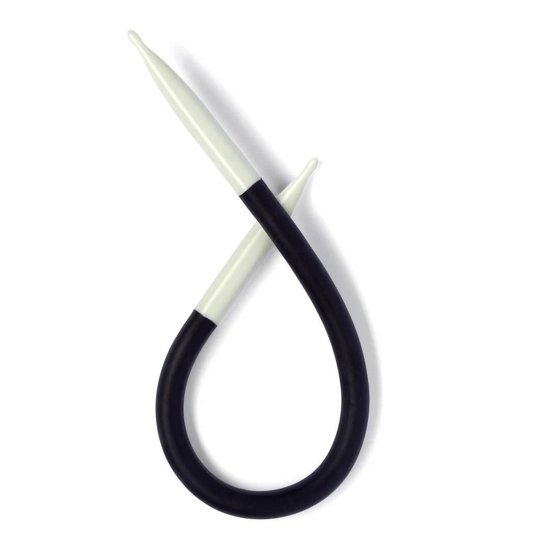 Prym Ergonomics Yoga Cable-Stitch Needle has a flexible shaft that can be bent into any desired shape and holds stitches without slipping.